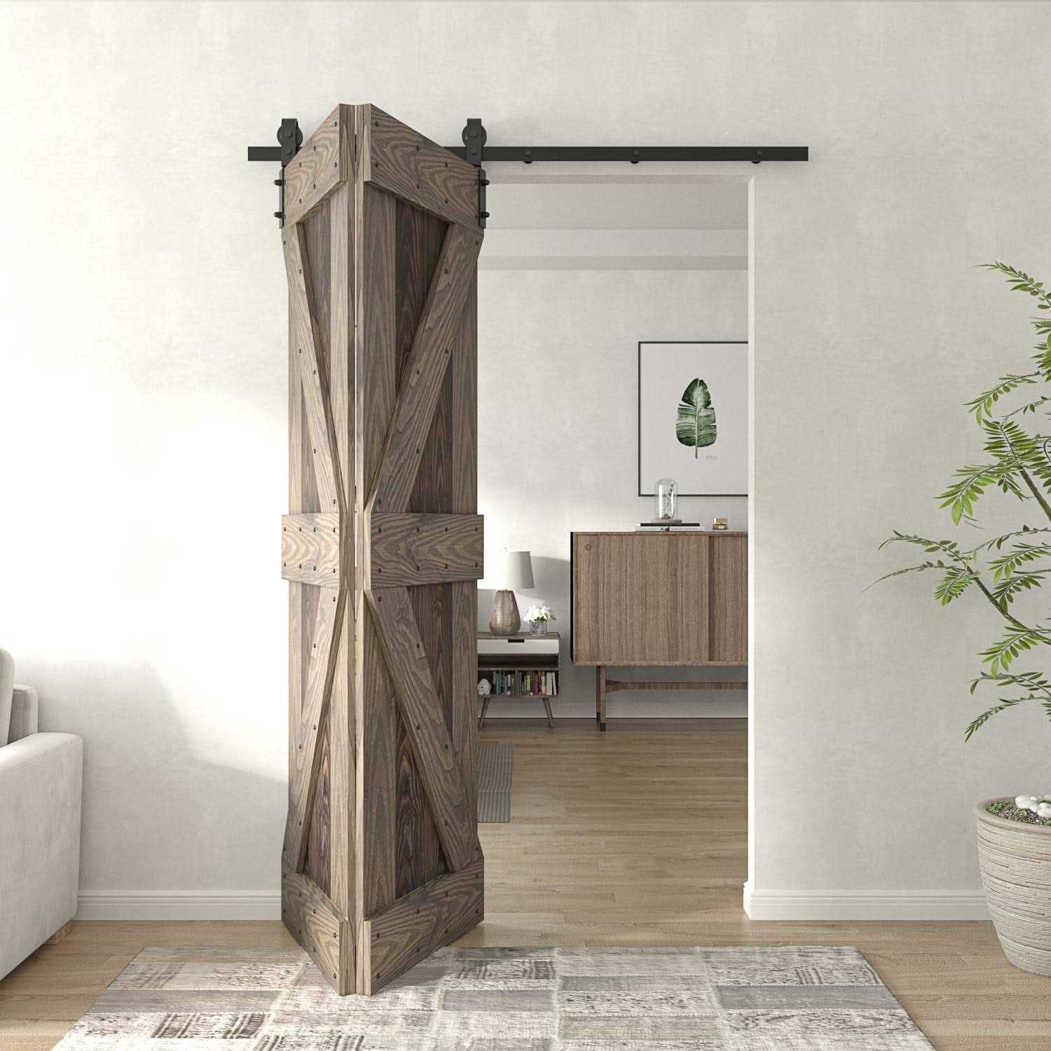 Emboss layer styles add 3D effect on the surface which you can feel the natural texture.100% Hand-made in the USA with natural fragrance of pine wood, which is more environmental friendly, Choosing an environmentally friendly door panel is most important for health. All paints are from the USA. Door comes in unassembled panels, adult assembly is required. Door has pre-drilled bore holes for quick and easy installation. Package includes: 2 Barn door leaves (unassembled panels), 1x Sliding Bi-Fold hardware kit, 1x handle, and all necessary screws required for installation. COAST SEQUOIA fine-select premium pine wood sourced nationally from the North America. Each piece has unique and natural wood grain. Every single barn door is hand-stained to protect and reserve the beauty of the wood. Bi-fold Barn Door with sliding hardware kit contains everything needed to transform any doorway from a traditional door into a convenient, space-saving and stylish sliding bi-fold door.