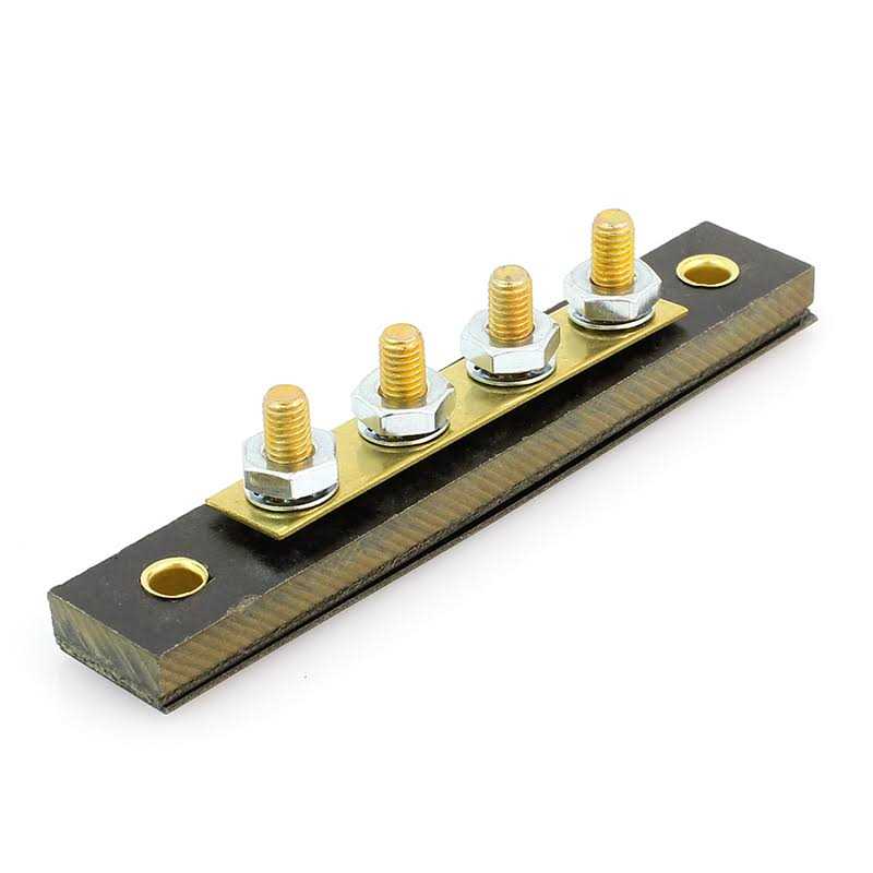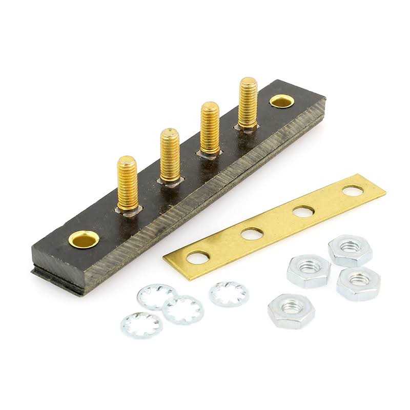 - Use as common hot feed or common ground block. Heavy plastic base with solid brass terminal bar and nuts.