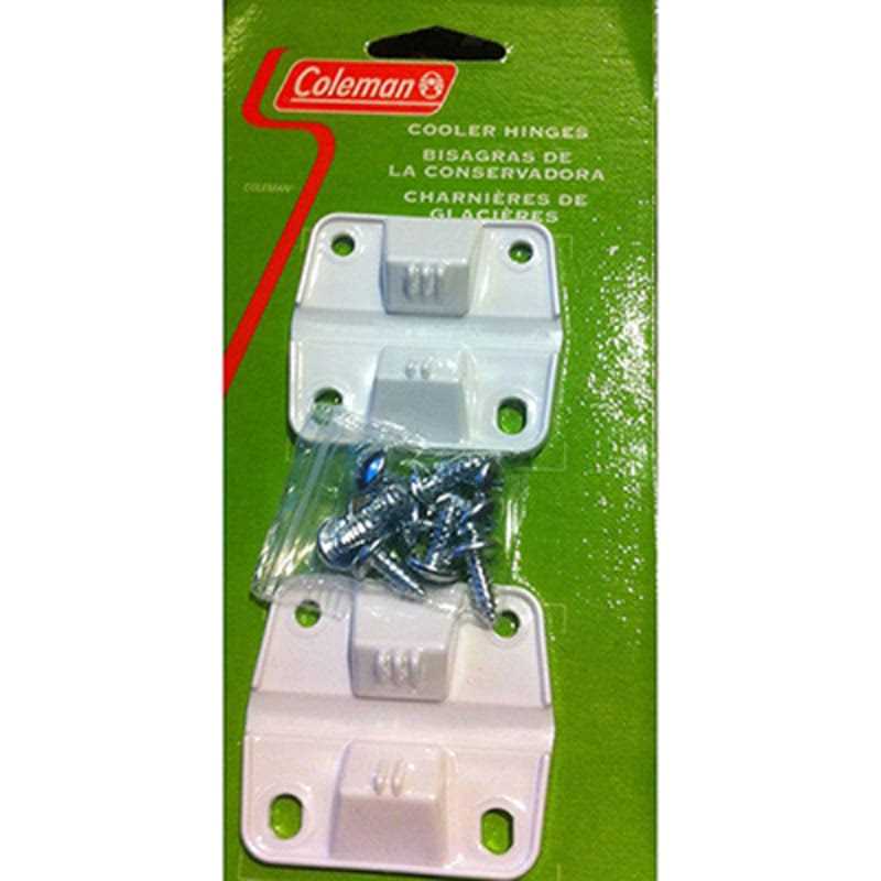 Get more life out of your cooler by easily repairing it with a two-pack of Coleman Cooler Hinges. Includes: – (2) hinges – Mounting screws Specifications: – For use on the following Coleman coolers: 5226, 5250, 5255, 5256, 5297, 5298, 5299, 5862, 5884, 5887, 6050, 6200, 6201, 6250, 6251, 6257, 6262, 6263, 6270, 6281, 6296, 6297