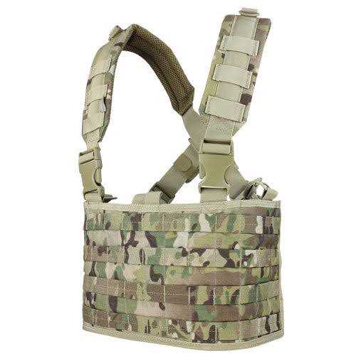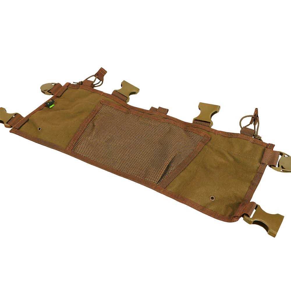The Condor OPS Chest Rig is designed for move-ability and comfort. It features padded cross-back shoulder straps for the most comfortable wear. It also features heavyweight webbing for modular attachments such as pouches, bags, etc. The OPS Chest Rig includes two open top utility pockets. There is also a front pocket pouch to store your choice of items that may be essential to your mission.