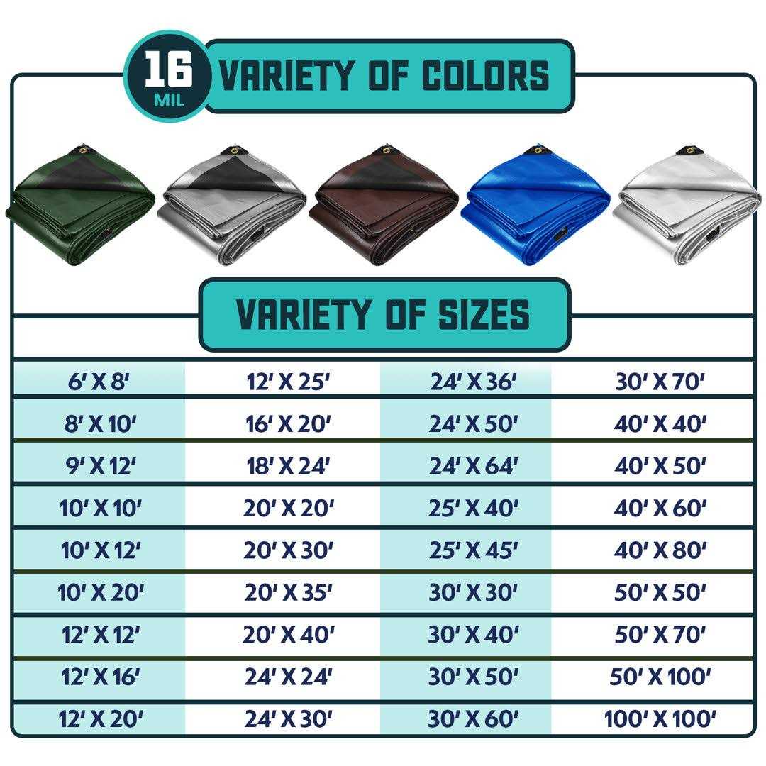 Core Tarps Extra Heavy Duty 16 Mil Tarp Cover 20′ x 30′ Silver/Black UV Resistant, Rip and Tear Proof.