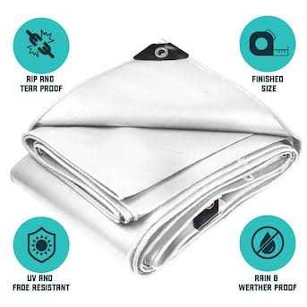 - Premium poly tarp is weatherproof, waterproof and UV resistant and it will protect any object from all extreme weather conditions