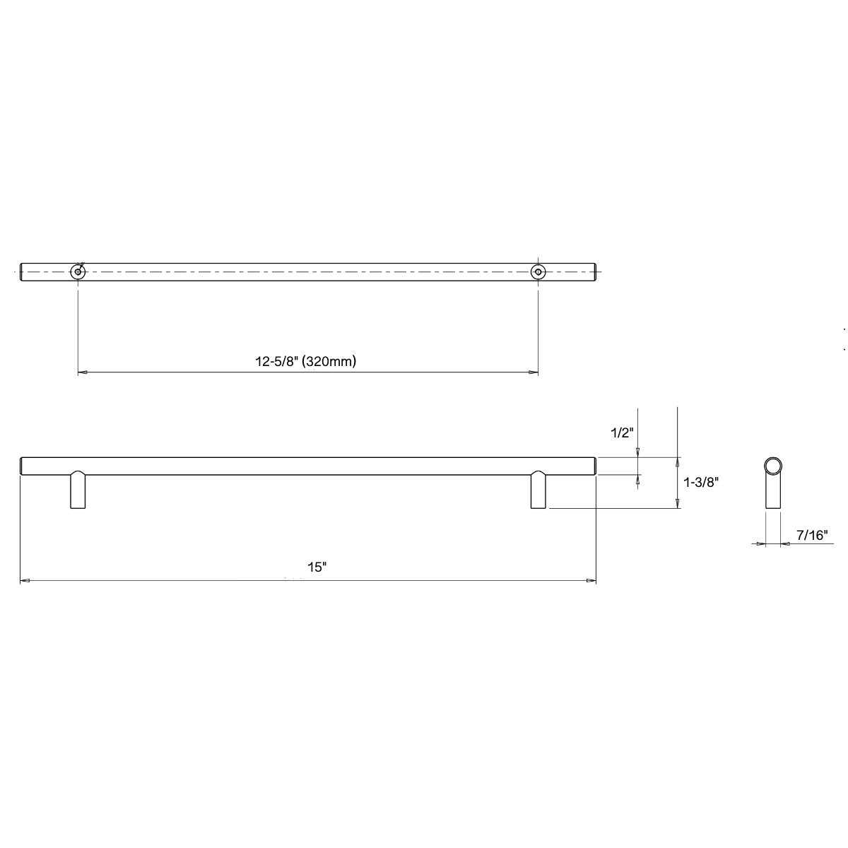 Cosmas Hardware is the way to go when designing or fixing up your kitchen or bathroom. Model # 305-320FB Features: Hole Centers / Drilling: 12-5/8″ (320mm) Overall Length: 15″ Width: 1/2″ Projection: 1 3/8″ Individually Polybagged with 1″ Mounting Screws Included.