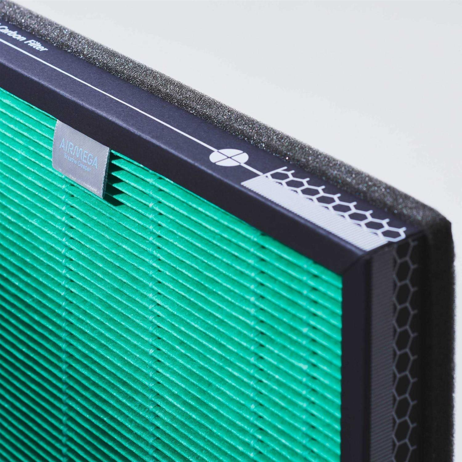The Coway Airmega Max2 filter-combined activated carbon and Green True HEPA filter captures and reduces up to 99.99% of 0.1-micron particles in the air, including pollen, pollutants, and other allergens. It also reduces volatile organic compounds by more than 99% and reduces fumes such as NH3 and CH3CHO.