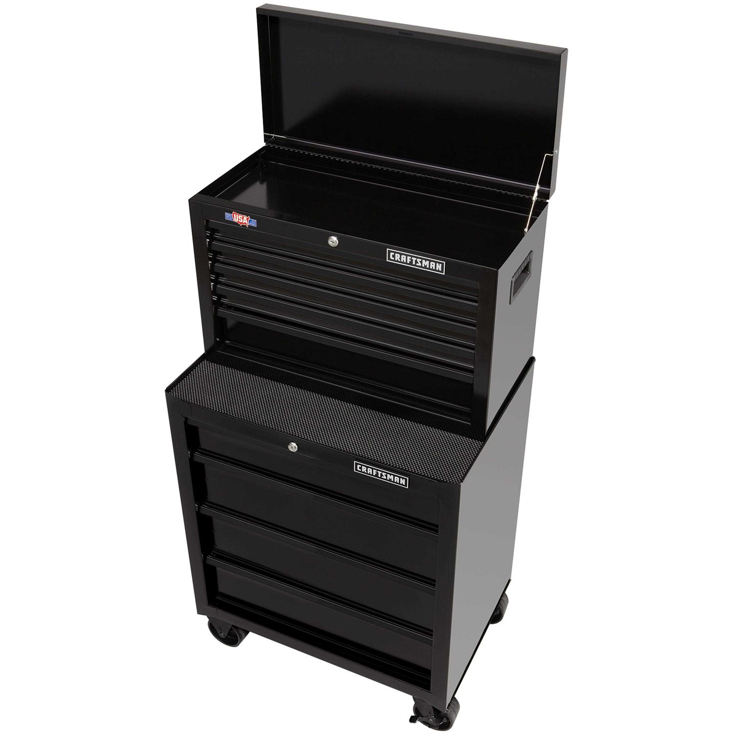 Proudly made in the he USA with global materials in Sedalia, Missouri. The Craftsman 1000 Series 26-in. Wide 5 Drawer Tool Chest is a great helper for any handyman. Arrange all your tools in the five shallow drawers in a single layer making them easy to locate in an instant. Get the whole set and you’ll get your garage organized in no time. MPN: CMST22654BK UPC: 721615312844. Dimension: 26-in W x 17.25 in.