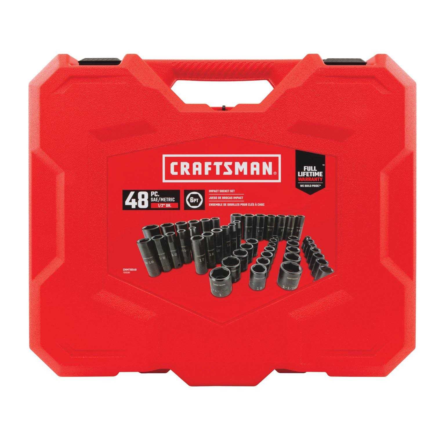 The CRAFTSMAN 48pc impact socket set comes with a black Oxide finish is idea for corrosion resistance and has large markings for quick socket identification.