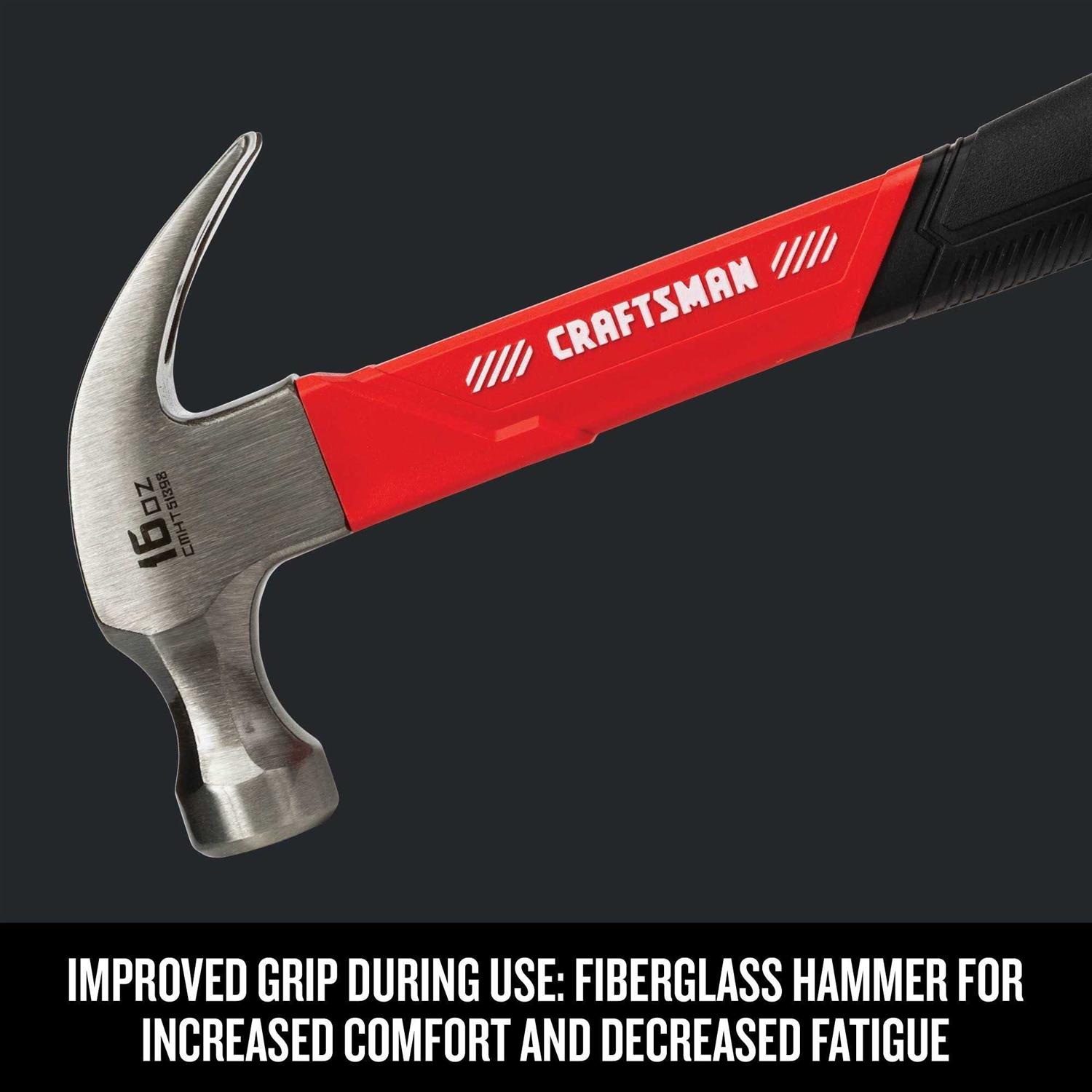 - Fiberglass hammer for increased comfort and decreased fatigue.