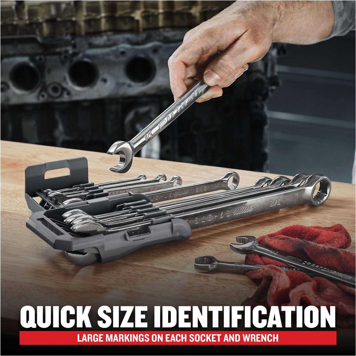 - QUICK-FIND MARKINGS – Quickly find the right tool for the job with easy-to-read sizes on each wrench.