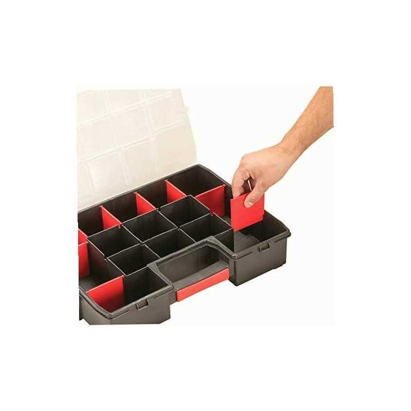 Tool Boxes by Craftsman. Details:The 10 Compartment Small Organizer has locking side latches that enable stacking and transporting up to three organizers at once. This organizer is highly customizable with its removable dividers, allowing both small and larger tools to be neatly organized. Special lid structure prevents movement of small parts from one compartment to another.