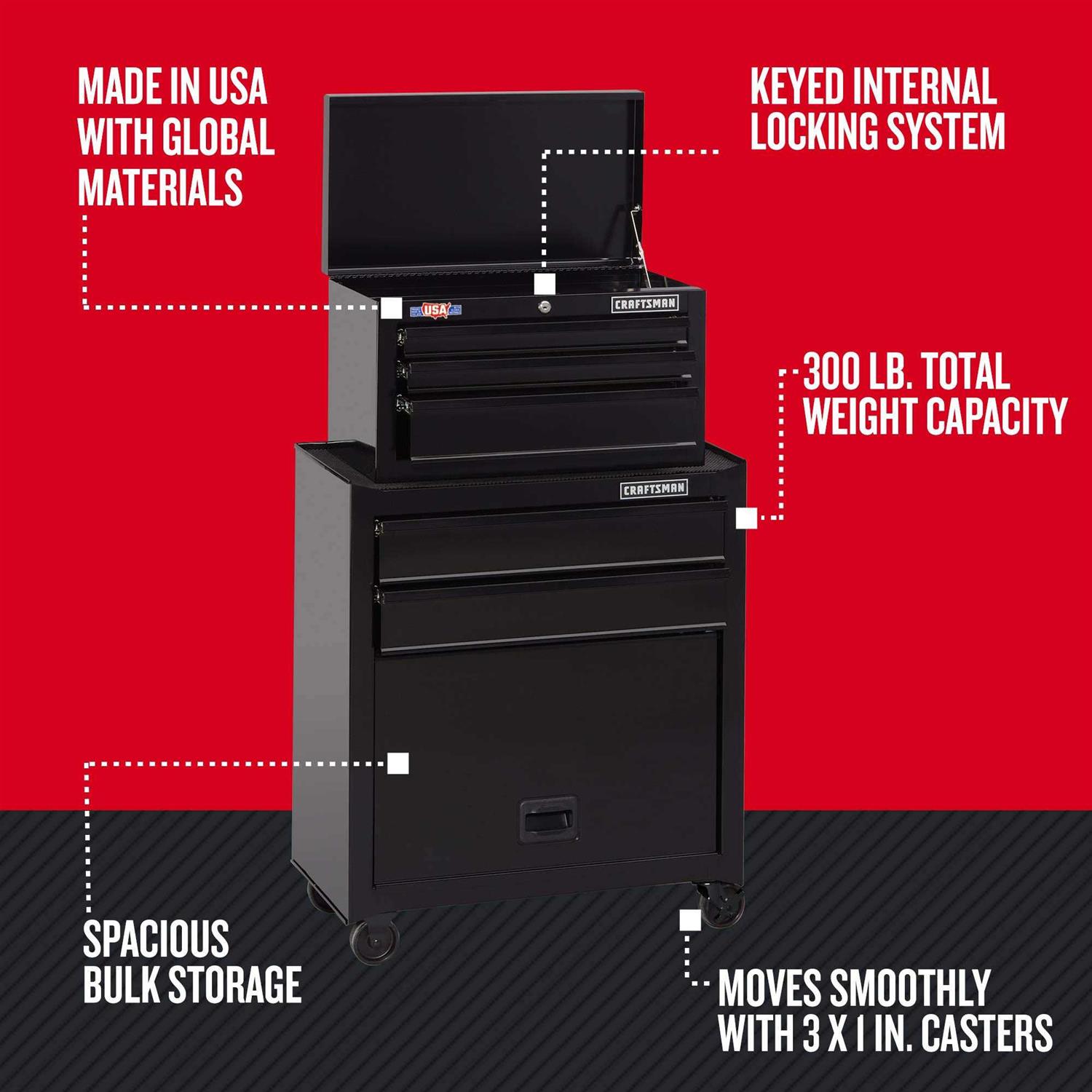 Craftsman Tool Chest Combo with Drawer Liner Roll 26-inch Rolling 5 Drawer Black (cmst82763bk)