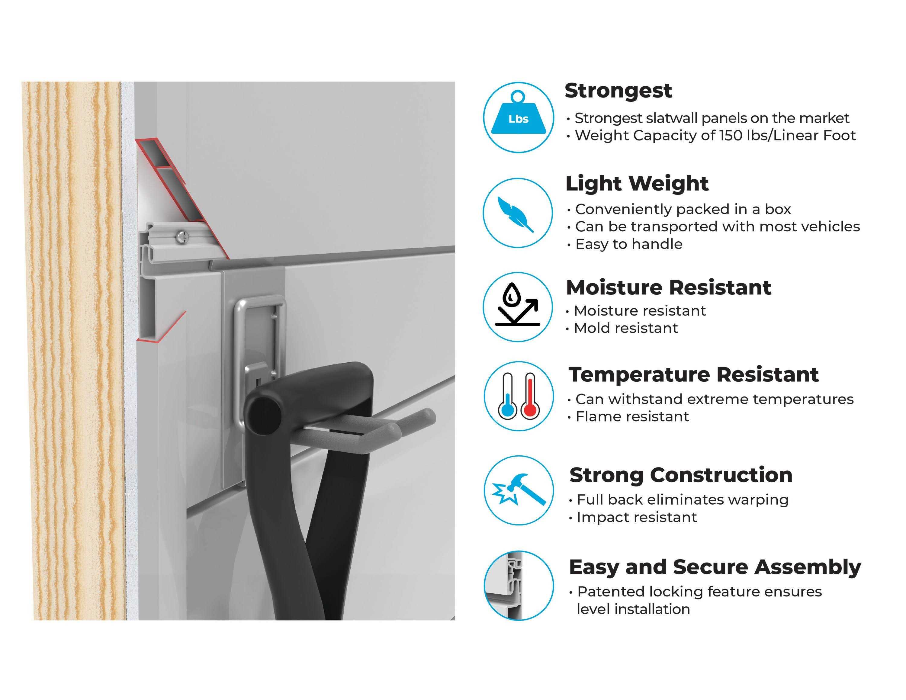 CrownWall PVC Slat Wall Panels Garage Wall and Home Organizer Storage System