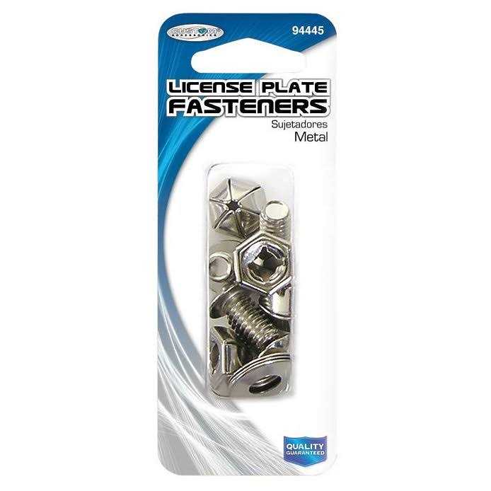 Metal License Plate Fasteners provide a durable solution for attaching your vehicle’s license plate. Ideal to replace lost or worn fasteners. The set of four screws, washers and nuts provides the necessary hardware for 2 or 4 whole license plate attachment. Ideal to replace lost or worn fasteners. Includes screws, washers and nuts.