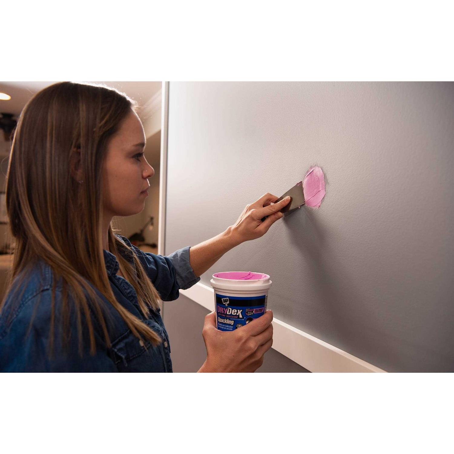 DAP DryDex Spackling, America’s 1 seller, contains a patented Dry Time Indicator causing the product to change color when optimum dry time is achieved. It goes on pink and turns white when dry. This unique feature is the indicator that it is ready to sand and paint.