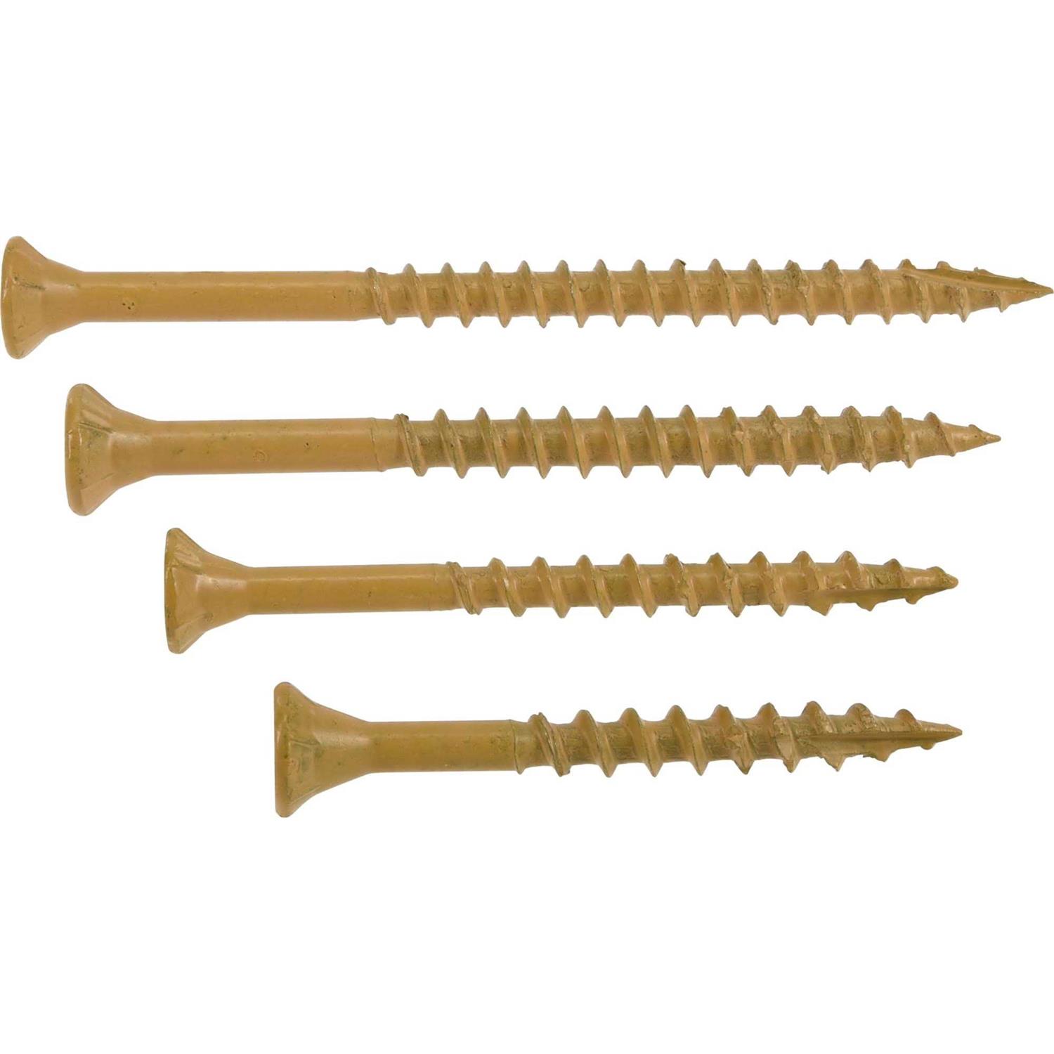 Offers a comprehensive finishing fastener solution & is perfect for all of your decking, fencing & exterior wood needs. Coarse screw threads & a self-drilling point design eliminate the need for a pilot hole. 4-layer epoxy coating provides superior rust and corrosion protection. Flat head style sits flush with the material. Star/torx drive is designed to reduce slippage and camout when tightening the screw. Free t25 driver bit included in package to take the guesswork out of installation. Recommended for use with acq, ca, and cca treated lumber. Tan color designed to match decking.