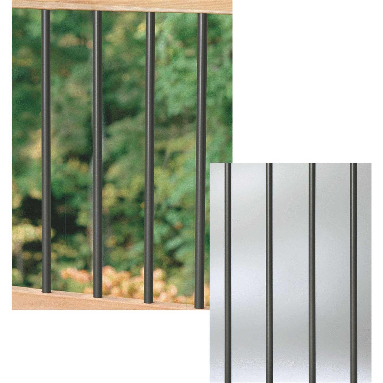 The DecKorators Aluminum Balusters provide a contemporary feel to any wood, composite or aluminum deck railings. They are designed to be installed with 2.5 balusters per linear foot using the installation guide for Classic Balusters. DecKorators deck balusters can be used for any inline rail kits or as stair railing. The 26 inches Balusters are used for 36 inches high rails using 2×4 railing. The 29 inches balusters are designed to build a 36 inches high rail using DecKorators CXT Railing or similar composite railing systems. The 32 inches balusters are designed to build a 42 inches high rail using 2×4 railing. The 36 inches balusters are designed to build a 46 inches high rail or fence using 2×4 railing.