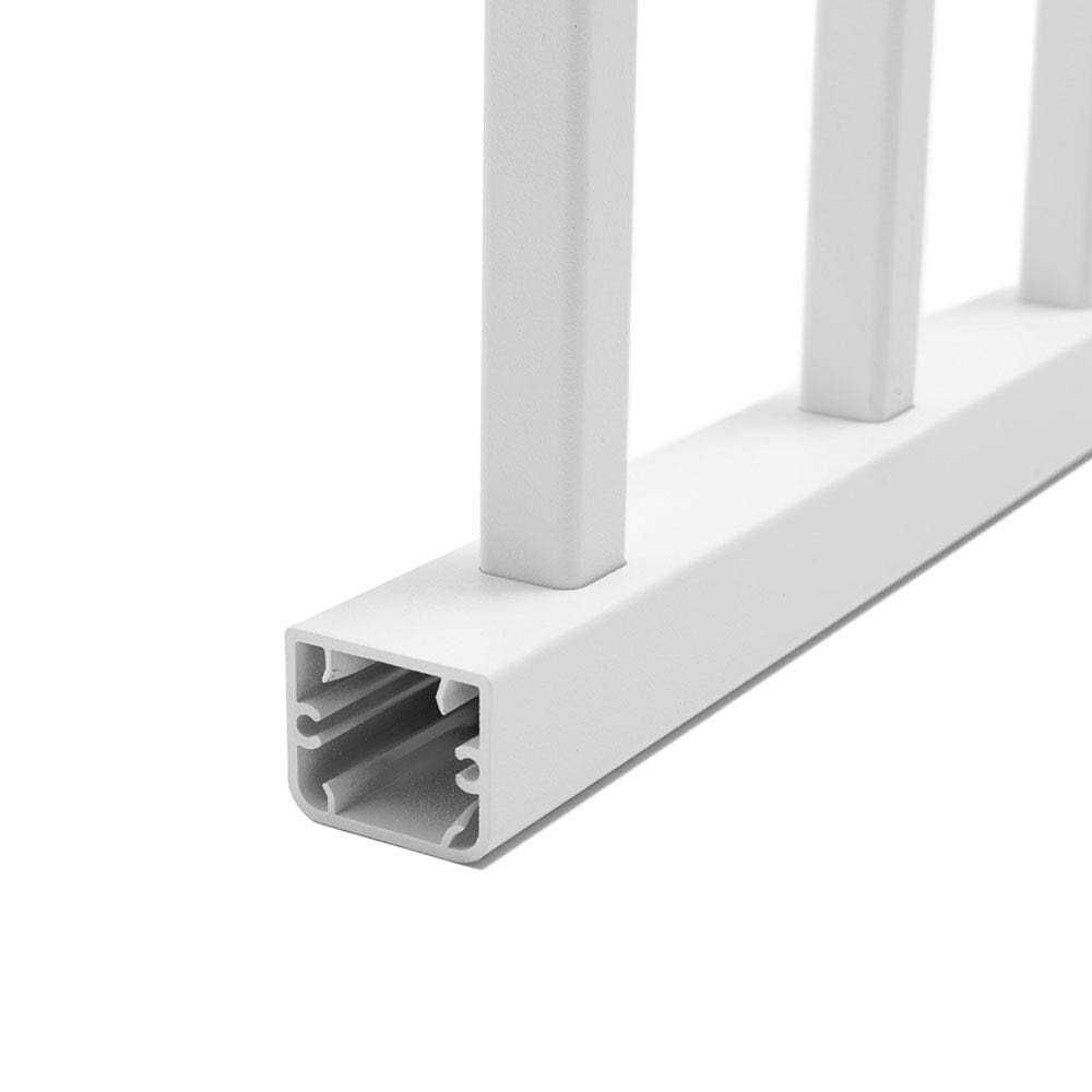 - Textured white powder-coated aluminum rail is durable and keeps its color