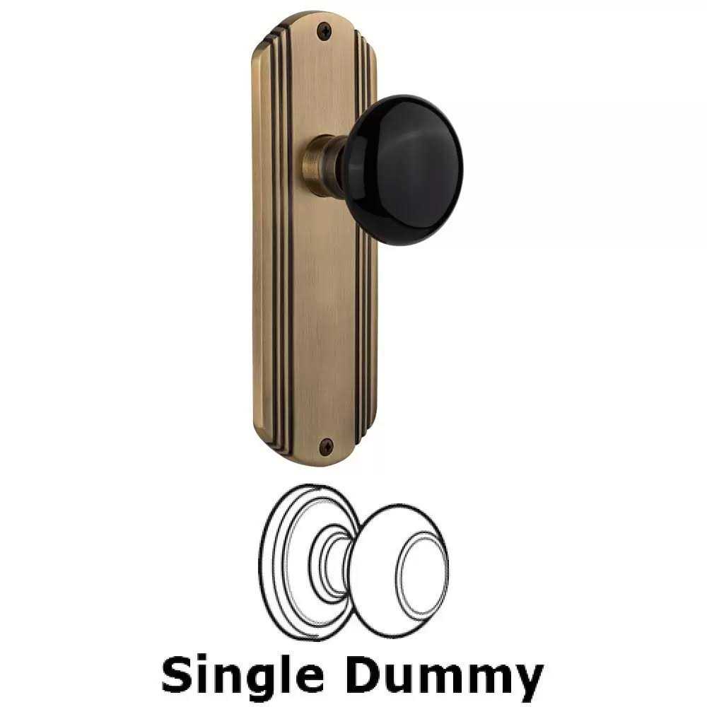 Nostalgic Warehouse The Single Dummy Door Knob with Deco Plate brings to mind old Hollywood, jazz and The Great Gatsby, all of which inspire a modern twist on great classics from the past. Add Nostalgic Warehouse timeless, kiln-fired Black Porcelain door knob to create a sophisticated, yet classic look. All Nostalgic Warehouse door knobs are mounted on a solid (not plated) forged brass base for durability and beauty.