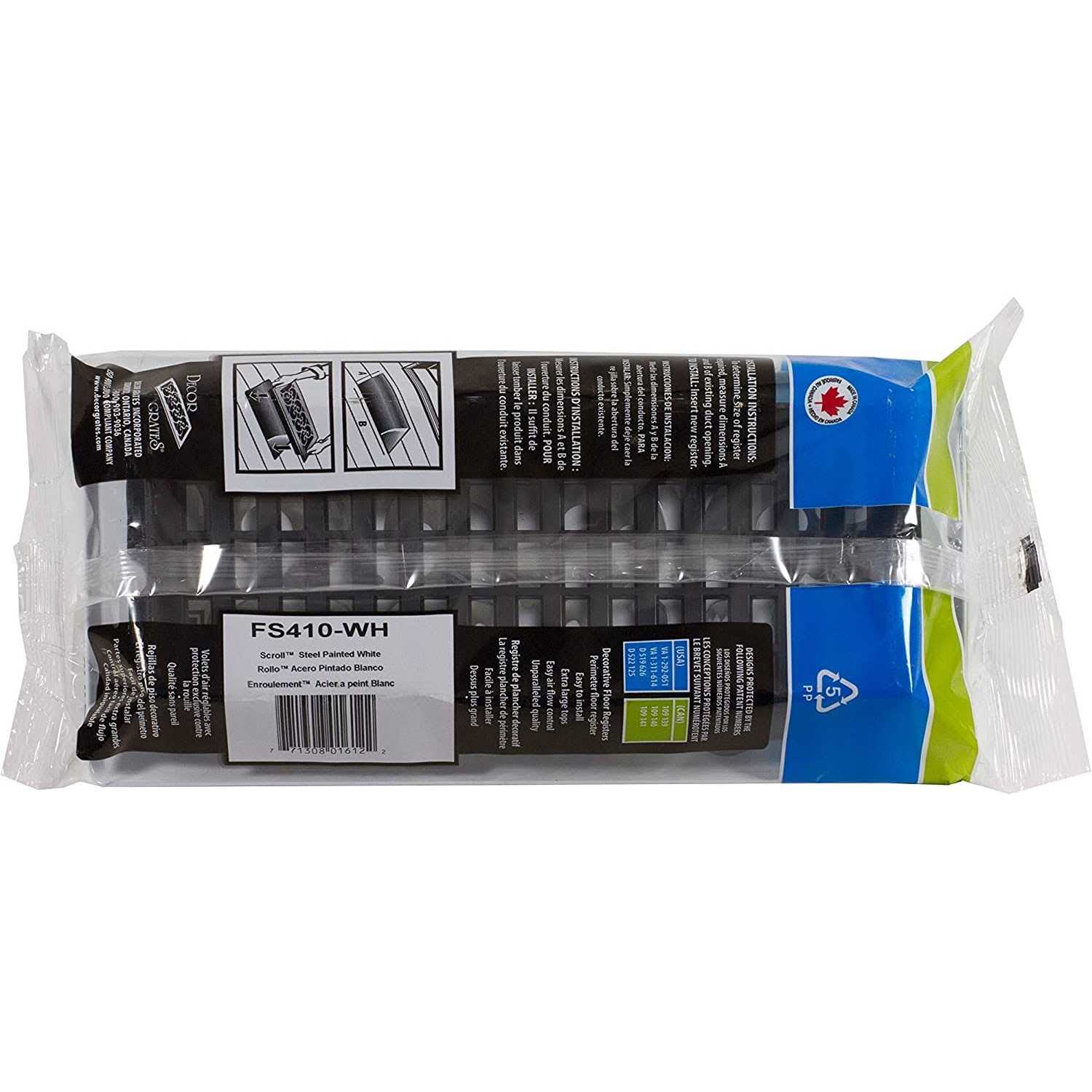 Dcor Grates Painted Register, White Scroll, 4″ X 10″ Decor Grates Scroll Design Registers are a high quality product with easy installation. These registers can be installed with basic household tools by almost anyone. White Scroll Model # FS410-WH Features: Rust proof damper body with easy air flow control Easy to install Crafted for long trouble free operation Classic design Non metallic damper controls airflow.
