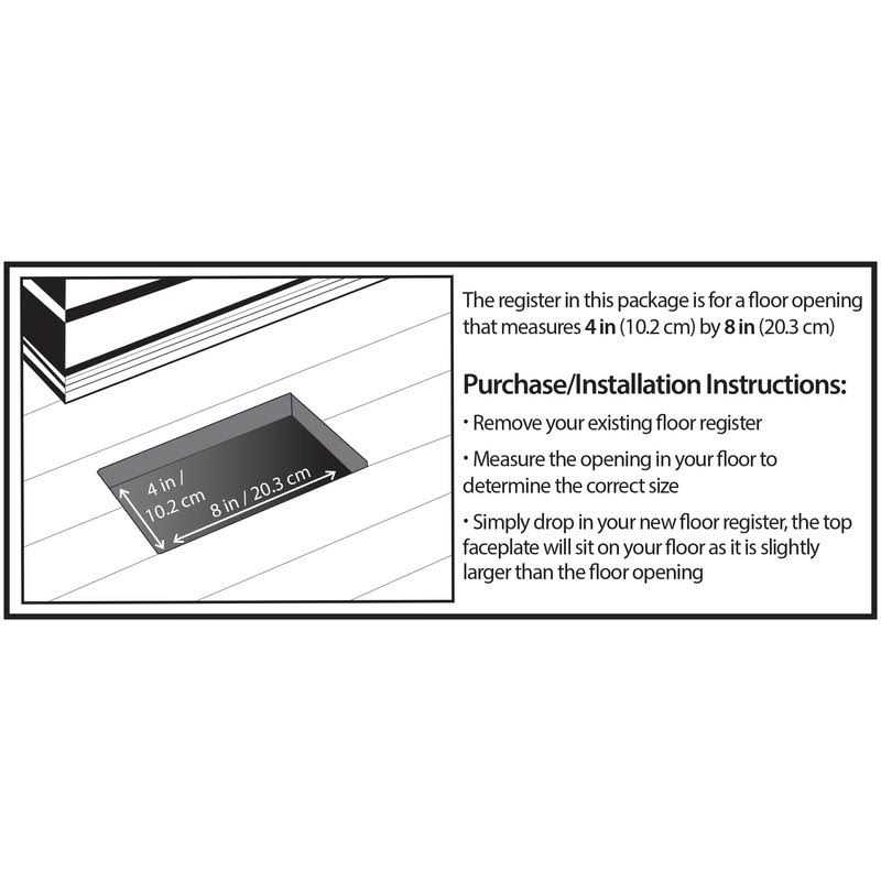 the damper will fit inside, the top portion will be slightly larger to sit on top of the floor Easy to install – simply drop into vent no tools required; low maintenance – easy to clean, wipe with damp cloth Plastic registers are all one piece