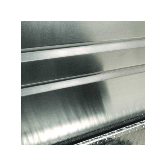 This DeeZee Narrow Crossover Toolbox is made of non-rusting .056 brite-tread aluminum. The front, back and bottom are made from one piece of aluminum with internal bends for superior body strength. It features a crown style lid, a full length hidden hinge, lockable stainless steel paddle handle latches, self-adjusting strikers, dampened gas shocks, and a closed cell foam gasket. J-bolt mounting hardware is included.
