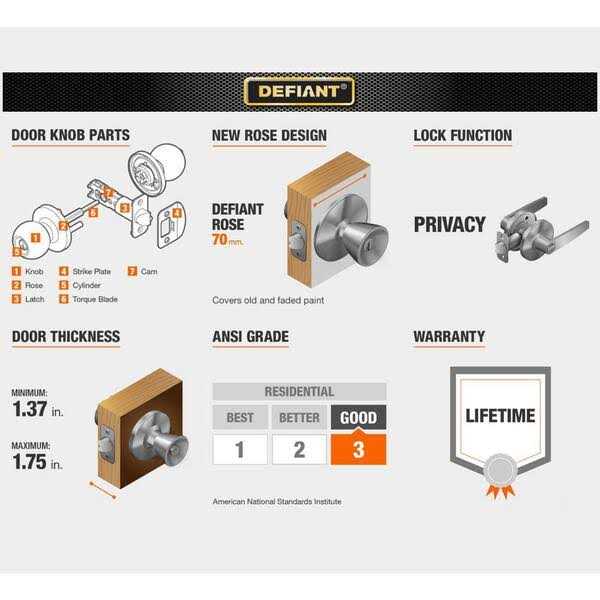 Featuring a Limited lifetime guarantee, Defiant meets or exceeds ANSI Grade 3 Standards for residential use. This lock features a radius latch with an adjustable backset and optional drive-in feature. The Powder coated finish will provide years of durability. When used as a replacement lock only a screwdriver is need to make installation a snap.