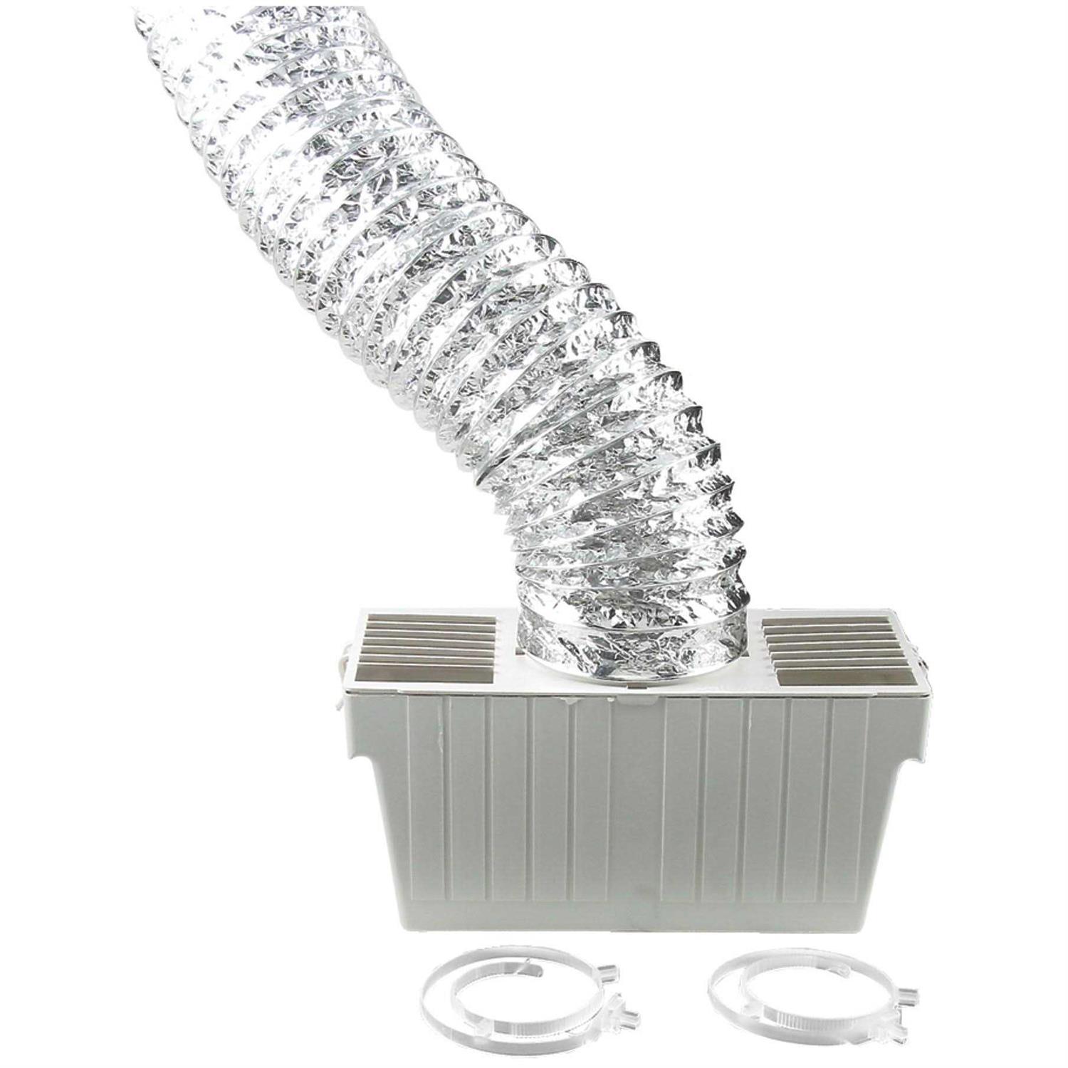 Intended for indoor use where external venting is impractical. Fits directly on to dryers with a rear spigot-type outlet, this kit is a uniquely designed water bath trap where the fine lint that is missed by the dryer filter is collected on the water surface. Simply fill to a 50mm depth of water and change when dirty. Suitable for dryers with a 100mm outlet flange or combine with DVS3 or DV4A diverter kits for dryers with flush outlet hole.