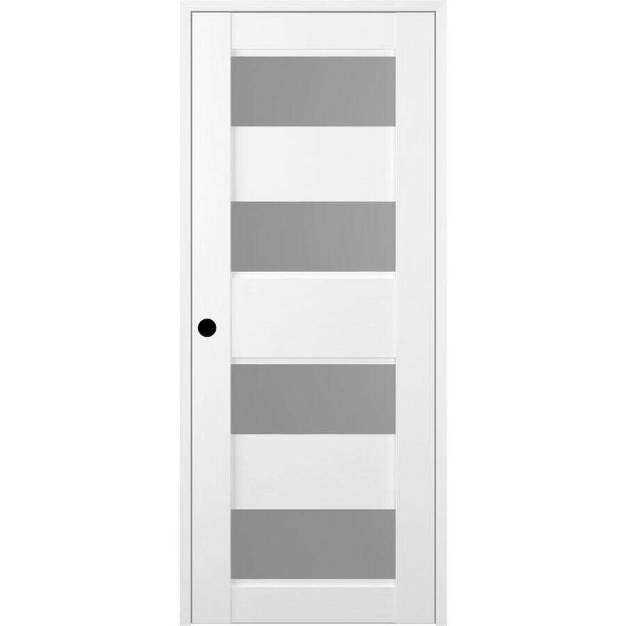 Belldinni della 18 in. x 79.375 in. Left-Hand Frosted Glass Gray Oak Solid Core 4-Lite Wood Composite Single Prehung Interior Door, Cold Brown/Gray