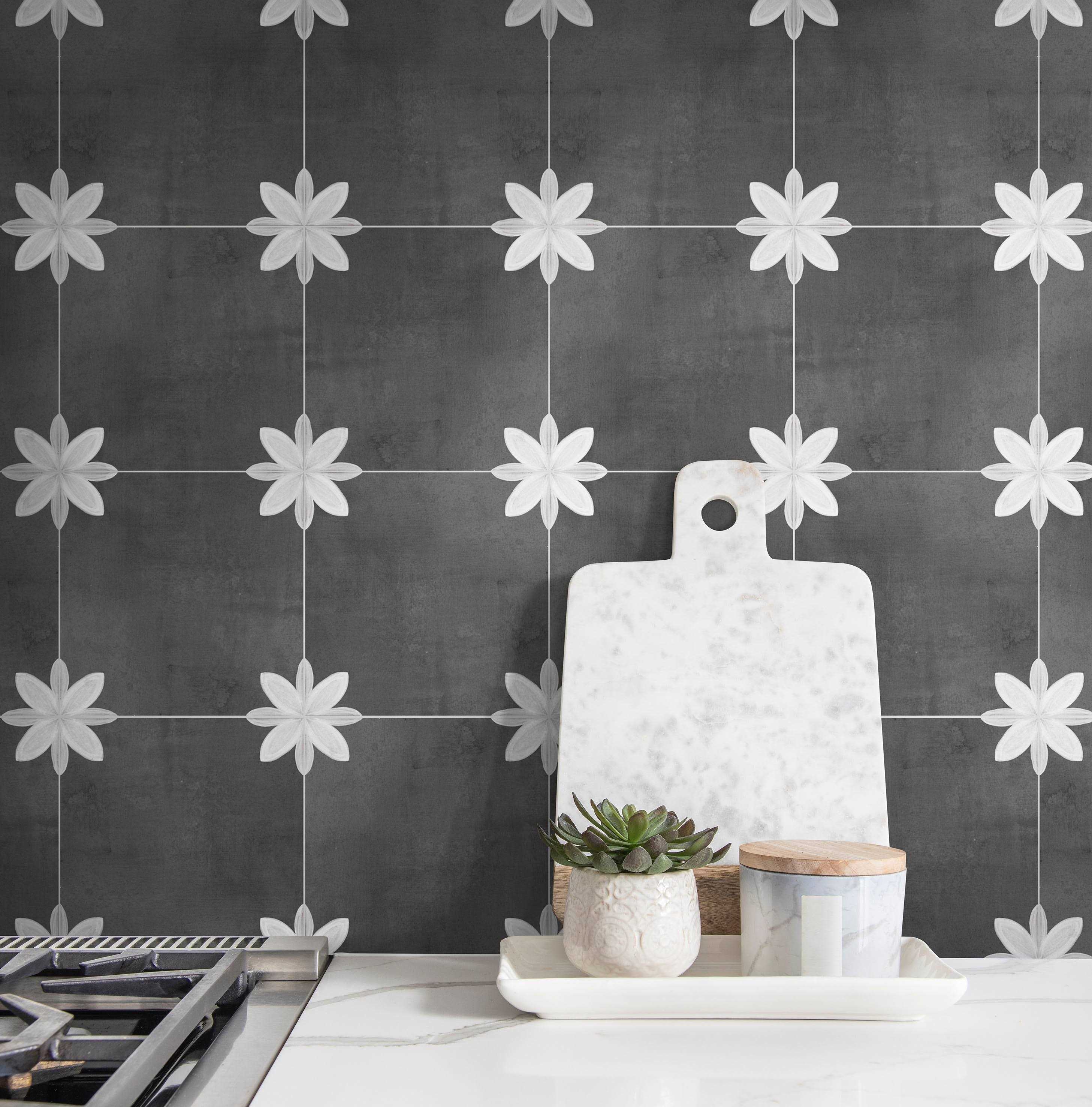 della Torre Fiona Matte Porcelain Patterned Floor & Wall Tile – Black – 8 in