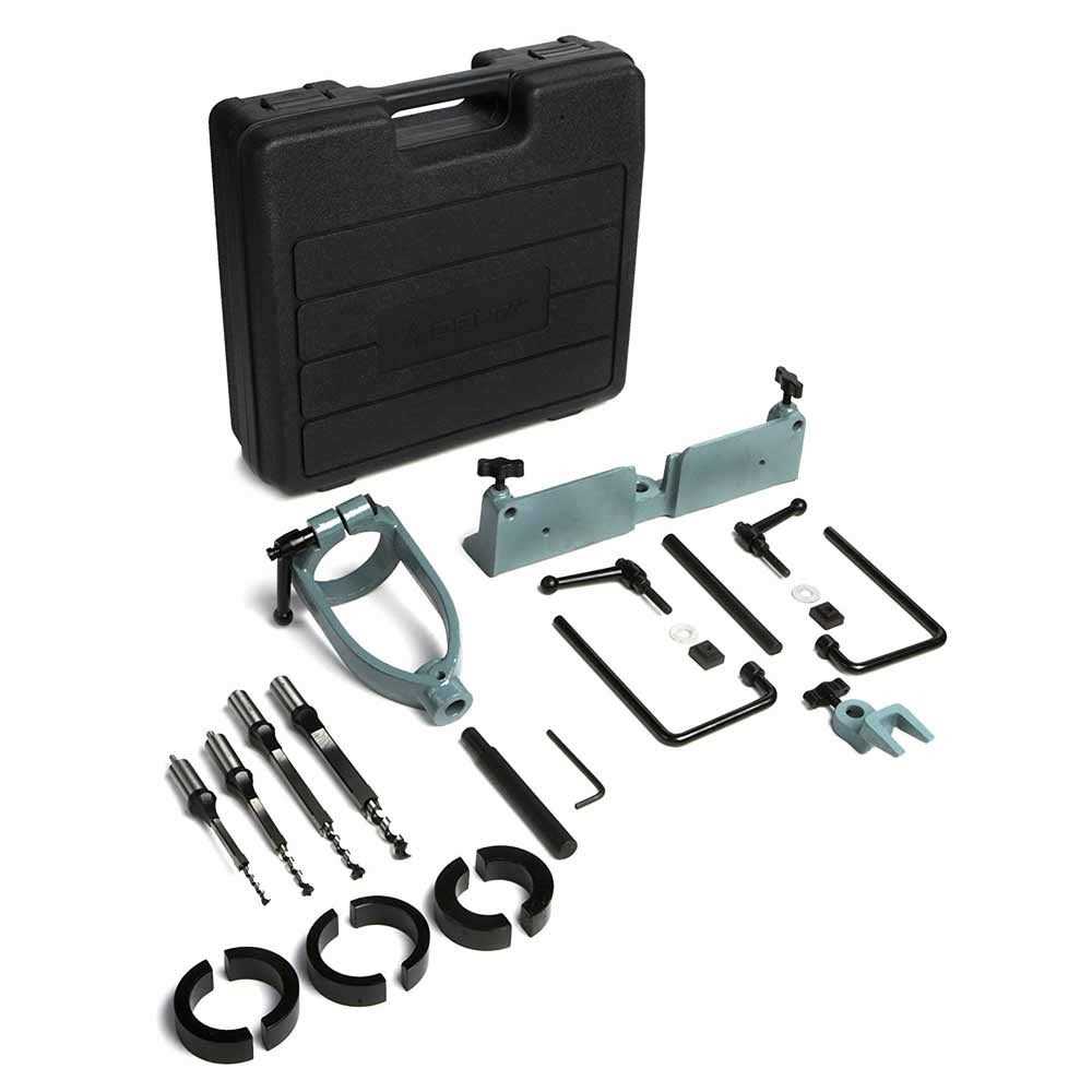 - Mortising attachment comes with four popular mortising chisel and bit sets plus a handy carrying case that holds everything for easy storage