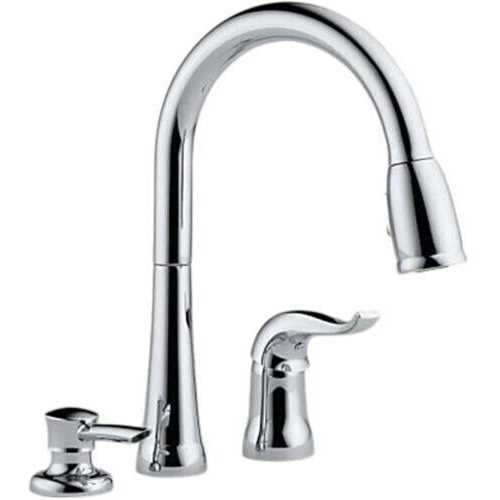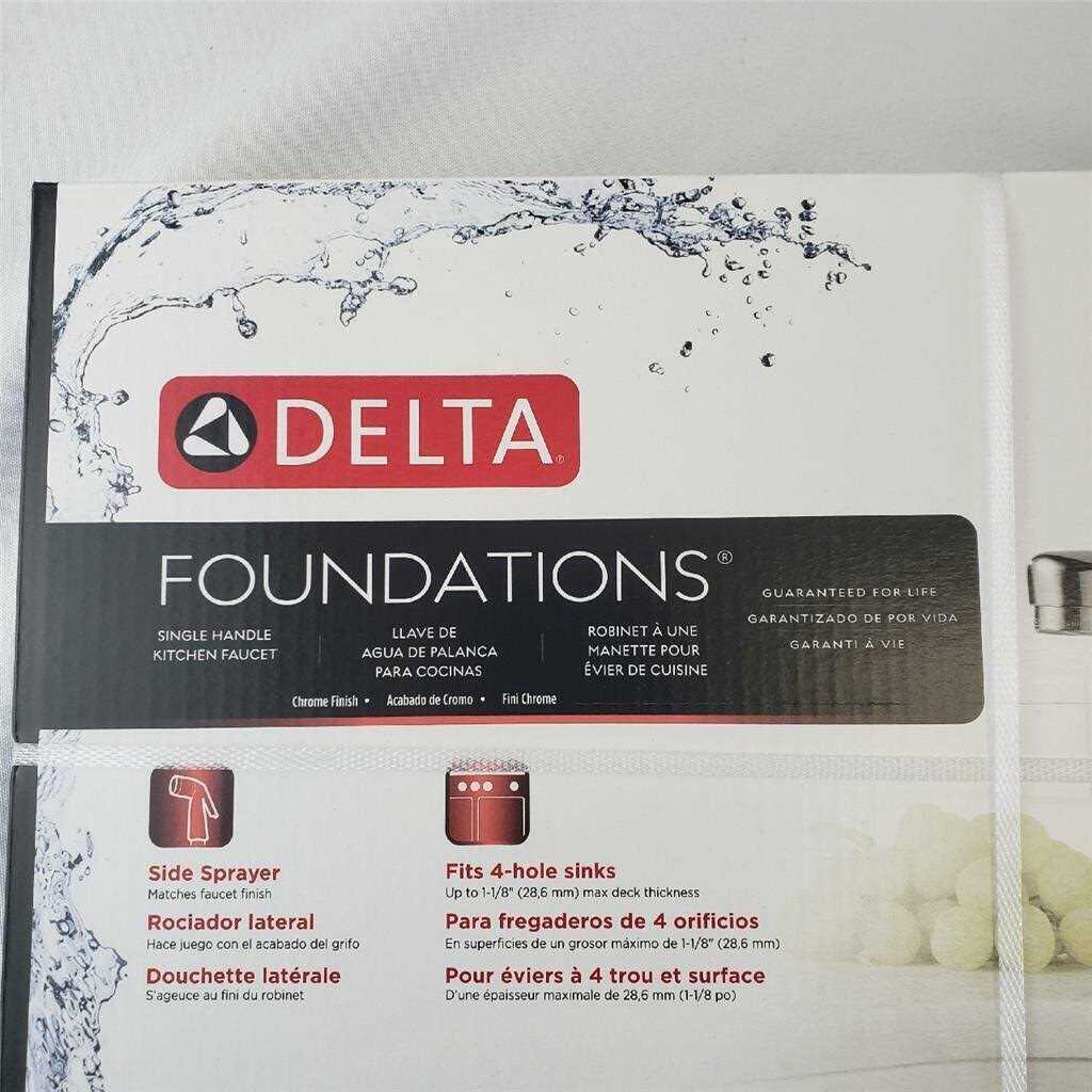 The Delta Foundations Single Handle Kitchen Faucet with Spray is ADA compliant. 3-hole 8″ installation. Standard spout swivels 360degrees. 1.80 GPM Includes convenient side sprayer.