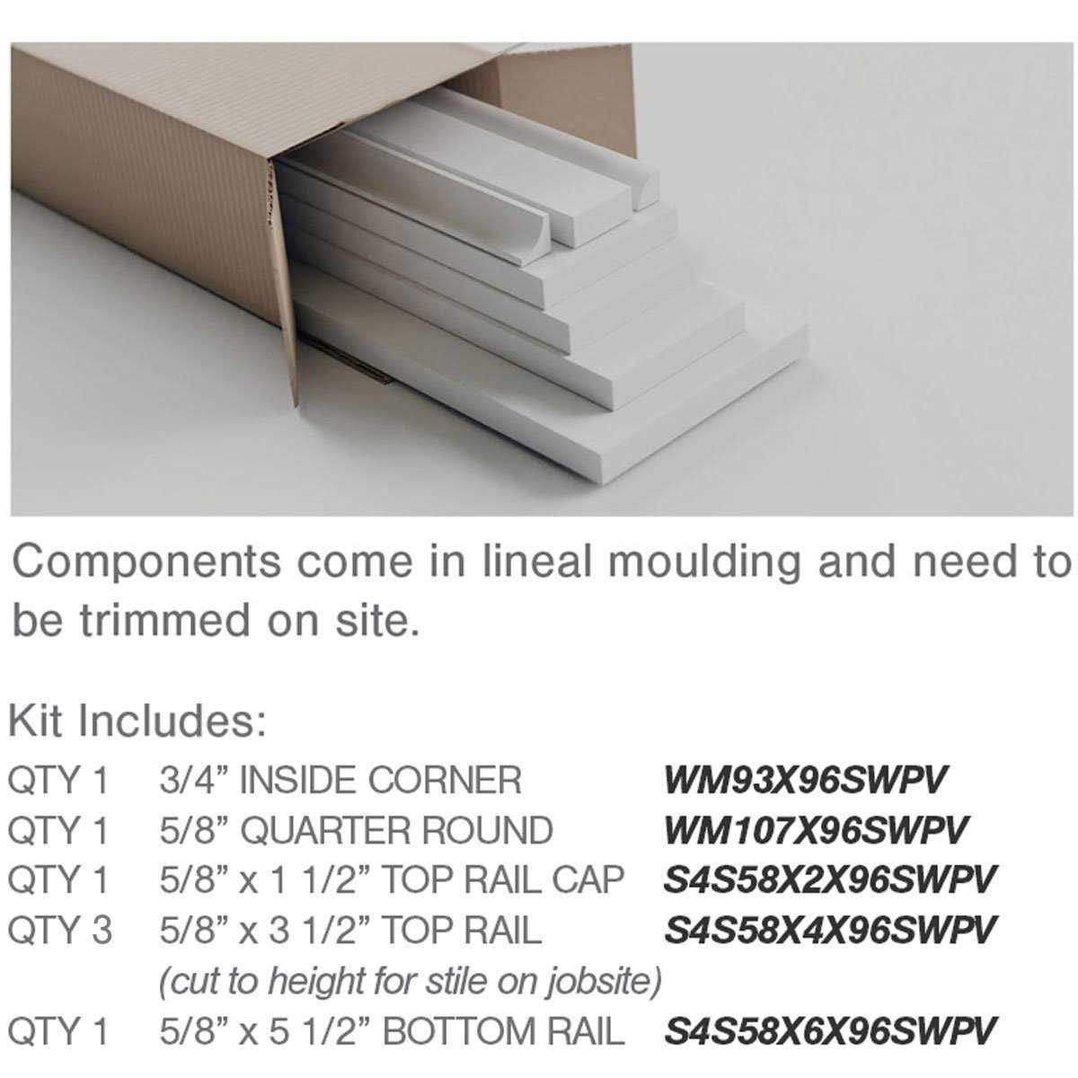 Our wall wainscoting kits bring the beauty of authentic flat panel wainscoting with the ease of a DIY installation. Each kit comes complete with a top and bottom rail and the appropriate length of stiles that can be trimmed to the height you need for your project. Unlike MDF wainscoting our PVC wainscoting kits are safe to use in high humidity areas like bathrooms and can be used on the interior or exterior of your home. Color: Unfinished.