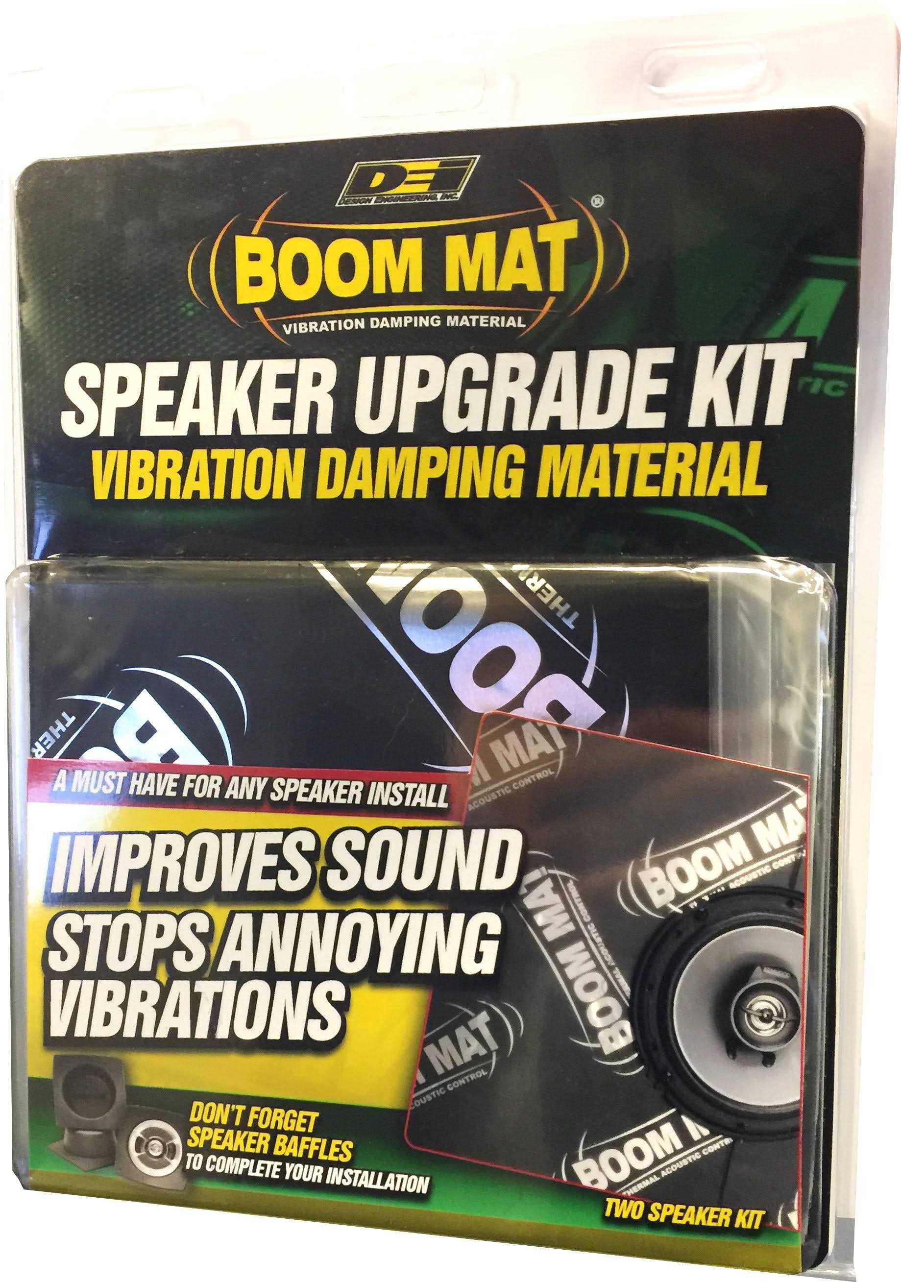 Peel and stick vibration reduction material Quickly improving speaker sound and performance by reducing vibrations and improving acoustics Includes four sheets of 6″ x 12.5″ (2.1 sq. ft.) Boom Mat Damping Material Simply remove the speaker, apply Boom Mat on metal mounting surface and re-install speaker The DEI Boom Mat Speaker Performance Kit is the perfect solution for quickly improving speaker sound and performance by reducing vibrations and improving acoustics. The kit includes four sheets of 6″ x 12.5″ (2.1 sq. ft.) Boom Mat Damping Material. Simply remove the speaker, apply Boom Mat on metal mounting surface and re-install speaker. It’s that simple!