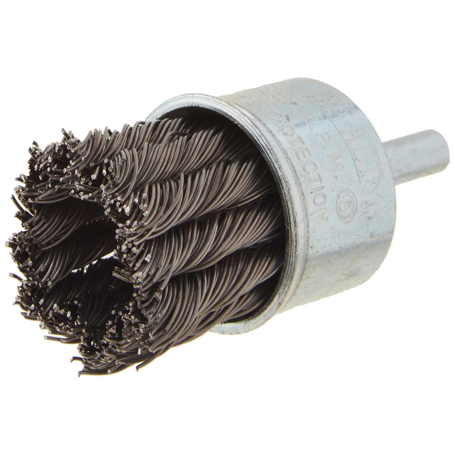 1″ x 1/4″, High Performance, Carbon, Knot Wire End Brush, .020″ Wire, Highly Specified Wire Grades Are Constructed With Internal Holding Plate To Ensure Consistency & Safety, Even Balance Which Provides Smooth Performance, Wire Is 100% Inspected To Meet Demanding Quality Specifications, 1/4″ Stem Arbor Size, Maximum Speed Is 20,000 RPM, Knotted Wire Is For Heavy Material Removal, Crimped Wire Provides Flexibility For Light Removal Of Rust & Paint, General Cleaning. Additional discounts apply for this item when purchased as Bulk.