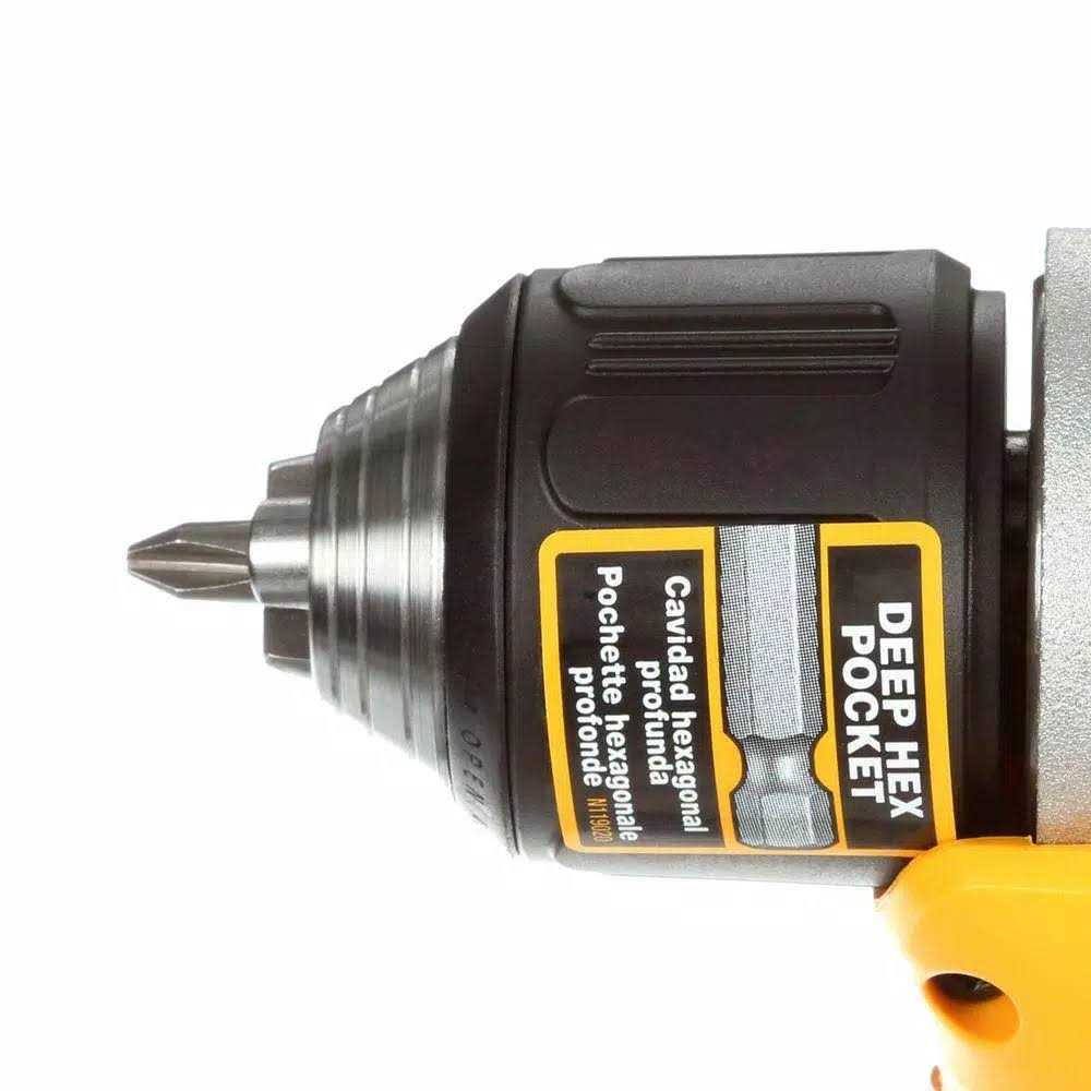 - 3/8in Ratcheting Chuck with Deep Hex Pocket allows 2in (50 mm) hex bit to be fully inserted for getting into tight spaces.