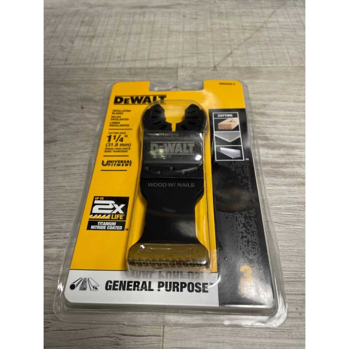 DeWalt general purpose titanium nitride coated oscillating blades are built for long life in tough applications. (versus DeWalt Bi-Metal oscillating Blade cutting nail embedded wood).