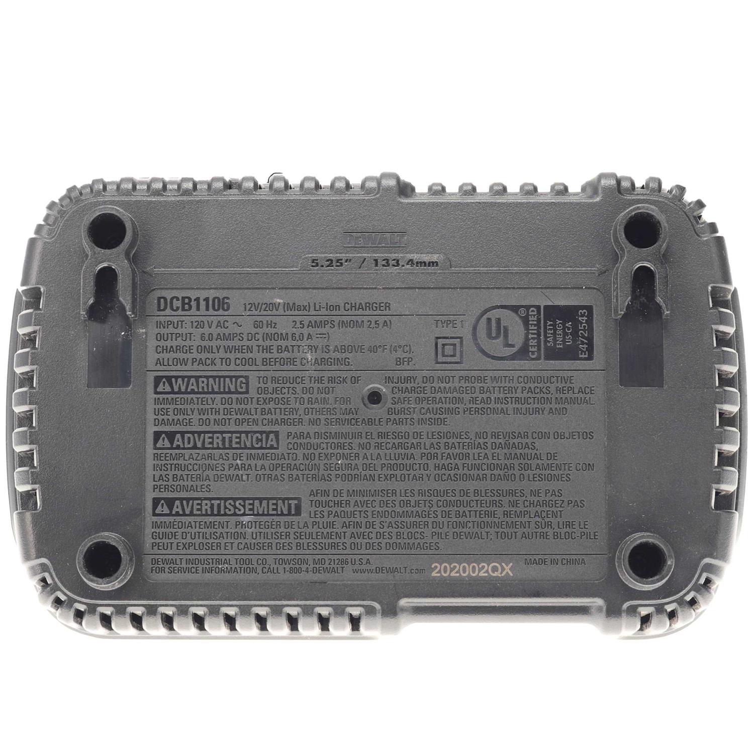 DeWalt DCB1106 12V/20V 6-Amp Max Corded Compact Charger