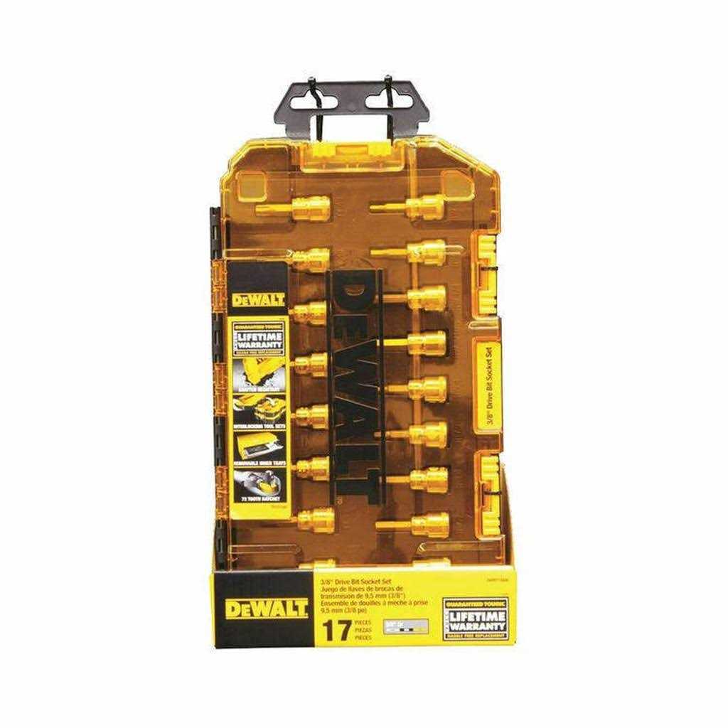 DeWalt DWMT73806 17 Piece 3/8″ Drive Bit Socket Set With the 17 Bit Socket Set, you can be sure you have the right tool for the job. The set includes a variety of sockets for your convenience. The sockets include DirectTorque technology to help prevent rounding of fasteners and to provide better grip.