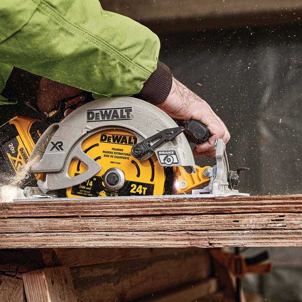 DEWALT 7-1/4-in 60T saw blade with patented body slots reduce vibration for exceptional feel. High-density tungsten carbide for toughness, wear-resistance, and long life. ToughCoat anti-stick coating reduces friction and gumming. Thin kerf design for smooth cuts. Reinforced shoulder for improved carbide support and impact resistance in nail-embedded wood. Optimized for use on both corded and cordless circular saws.