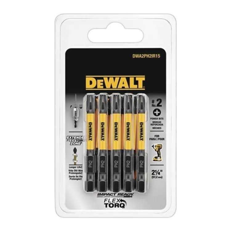 The DeWALT DWA2PH2IR15 is a 2″ Phillips bit driver featuring an extended FlexTorq Zone, which transfers optimal torque and provides long-term use. Additionally, this bit driver integrates Impact Ready bits compatible with impact drivers. Furthermore, the DWA2PH2IR15 driver incorporates a CNC-machined bit tip that ensures a precise fit in screw heads, minimizing the possibility of any cam-outs.DeWALT designs and optimizes professional tools from power tools to hand tools with high manufacturing quality and materials for all sorts of construction work. Grab the impact-ready Phillips bit driver now! Get the DWA2PH2IR15 bit driver here at PlumbersStock. You can also check our tool organizers, hand tools, and workwear.