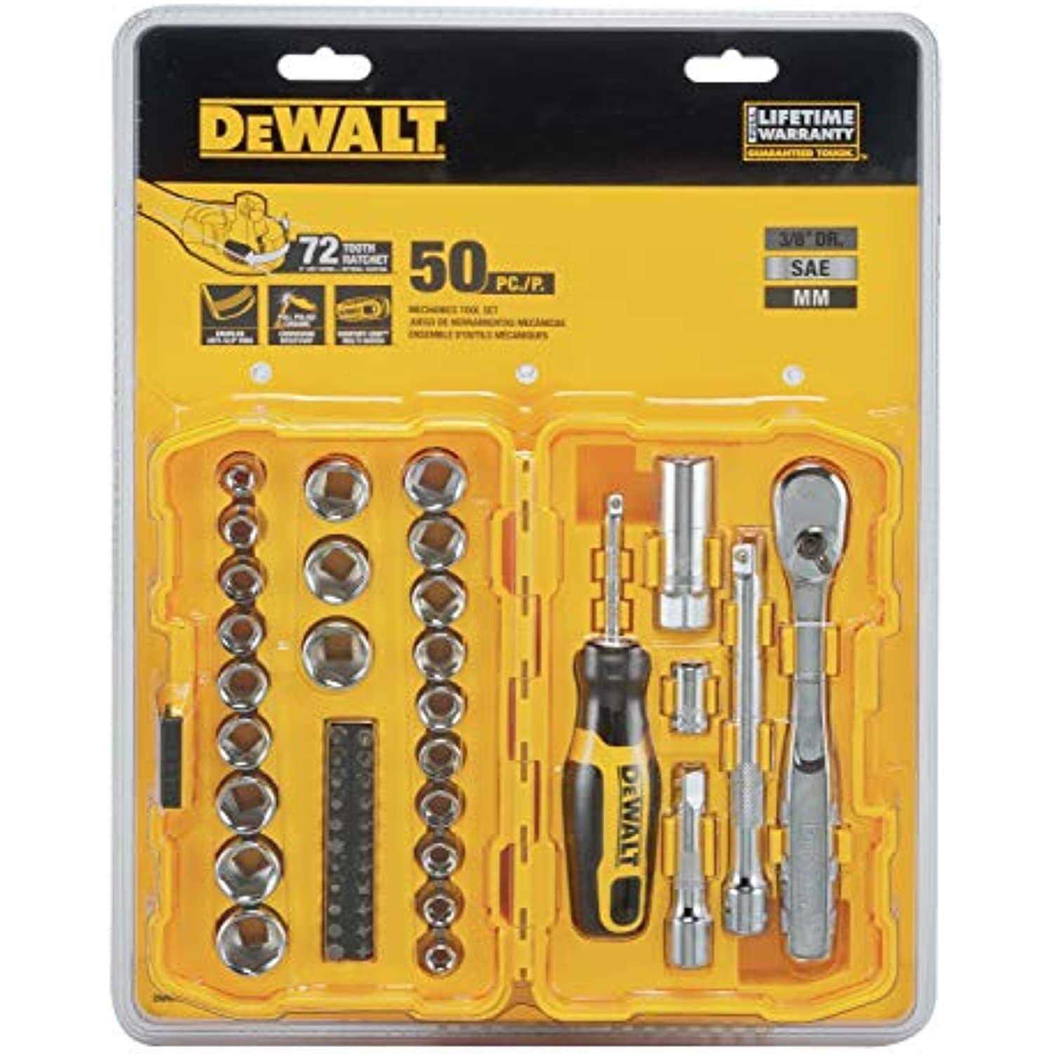 This DEWALT Mechanics Tool Set equips you with everything you will need for the job. This Mechanic Set is ideal for the Professional on the job/ home use that wants to get the job done right.