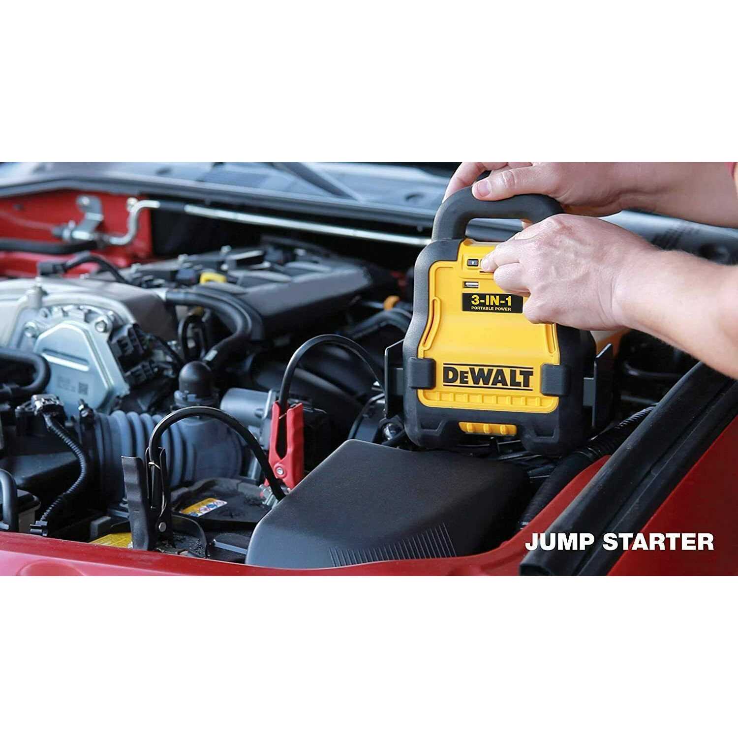 Up to 20 Amps of boosting power. Can jump start 8 cylinder vehicles in minutes. Comes with 2 : 3.1 Amp USB ports to power up personal electronics. Two powerful LED lights for clearest view of the job. Three button control panel with translucent main power button. LED status indicator back lit main button provides job status. Works with any DeWALT 20V lithium battery packs. Compact and lightweight design for ease of storage. One button battery boosting with LED indicator. On board clamp and cable storage.