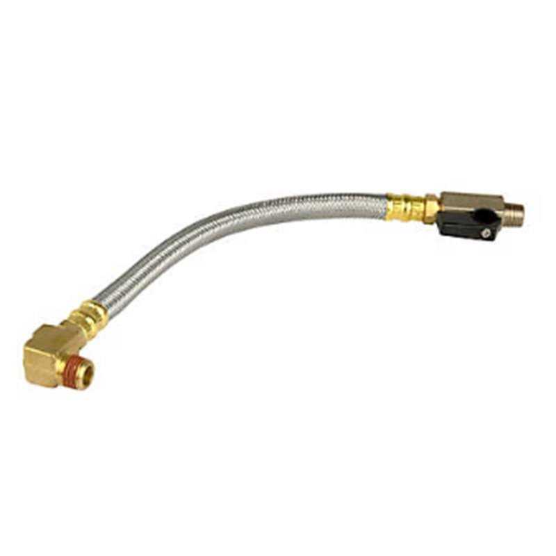 - Tank drain valve assembly includes elbow with pre-applied thread sealant, 10 in. flexible braided steel hose and a quarter turn drain valve