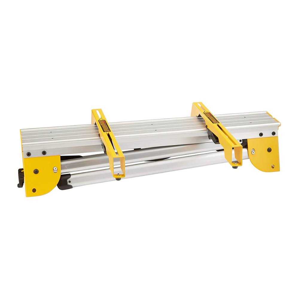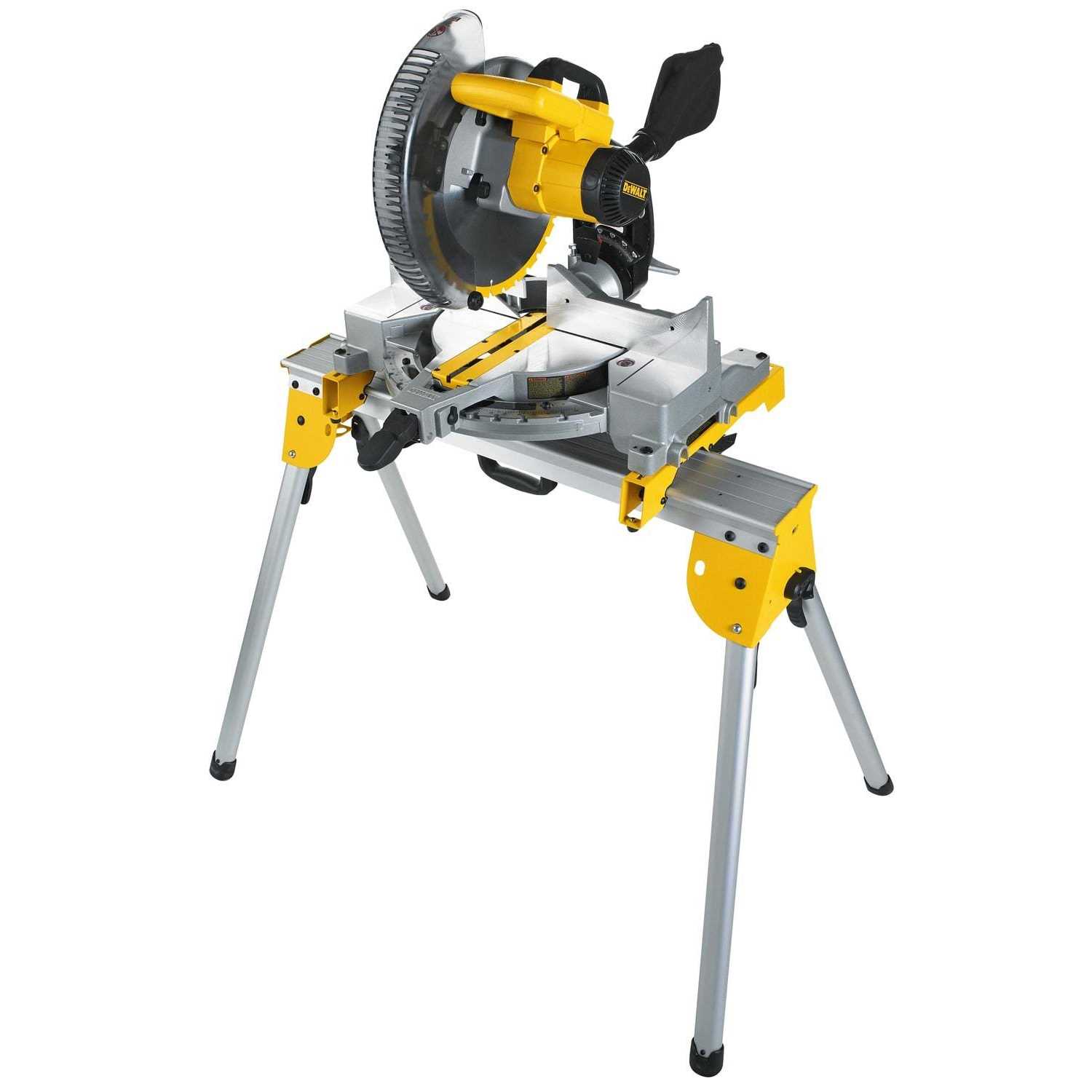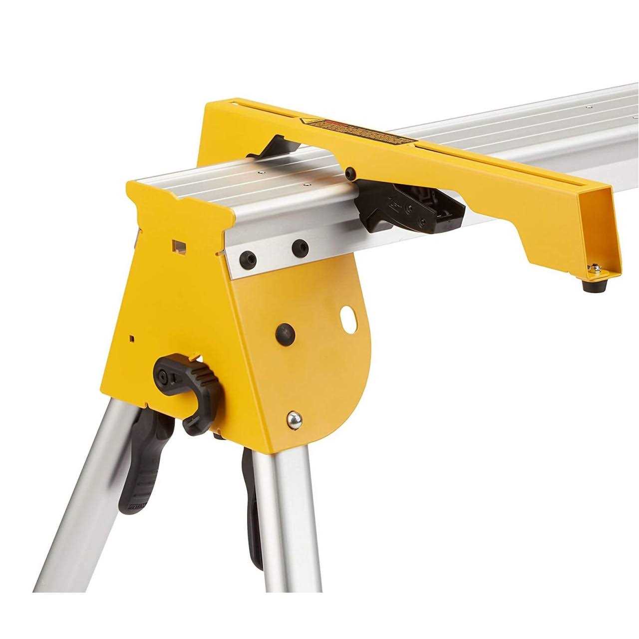 The DWX725B heavy-duty work stand with miter saw mounting brackets is built to handle the toughest jobs with capacity of 1000-lbs (each). Compact design, transport latch, and lightweight aluminum construction (17 lbs.) enable easy transport. Leg lock levers allow quick set up. Includes DW7231 miter saw mounting brackets for use as a tool stand.