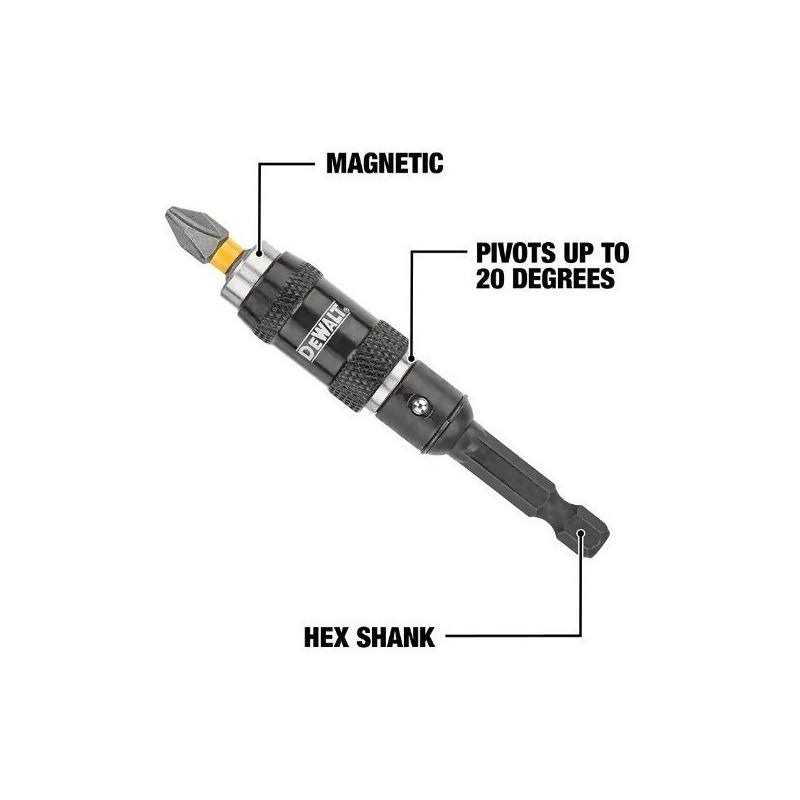 DEWALT MAXFIT stainless steel, pivoting holders are engineered for use with Impact Drivers and pivot 15° for access in tight spaces. They feature an industrial strength magnet for fastener retention and a hog-ring to ensure accessories are held securely in the holder. They are compatible with 1 in. bits.