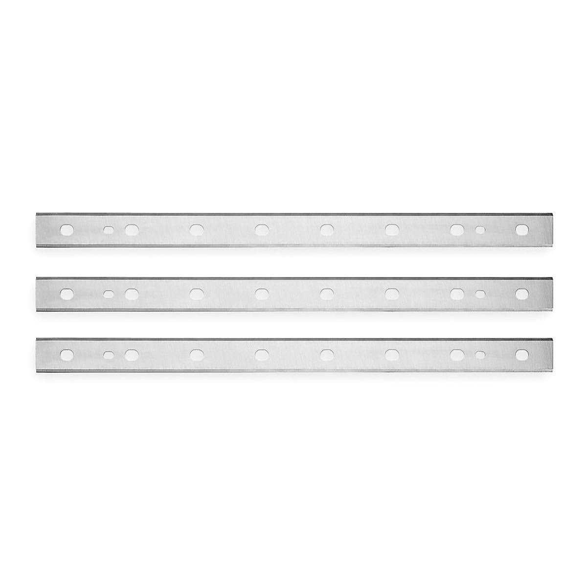 M2 laminated tool steel stays sharper and lasts longer than conventional knife materials Machined locator pins make alignment of new knives fast and easy Crafted from M2 laminated steel for sharper edges and better durability Designed for use with the DW734 12-1/2-inch thickness planer 12-1/2″ The DeWalt DW7342 kit includes disposable, reversible, replacement knives for use with the DW734, a heavy-duty 12-1/2-inch thickness planer with a three-knife cutter-head. Crafted from durable M2 laminated steel, these dependable knives stay sharper and last longer than conventional knives, making replacement less frequent and saving you money. Special, machined locator pins mean that it’s simple to fit these knives onto the cutter-head of the DW734 for safe, accurate performance down the road.