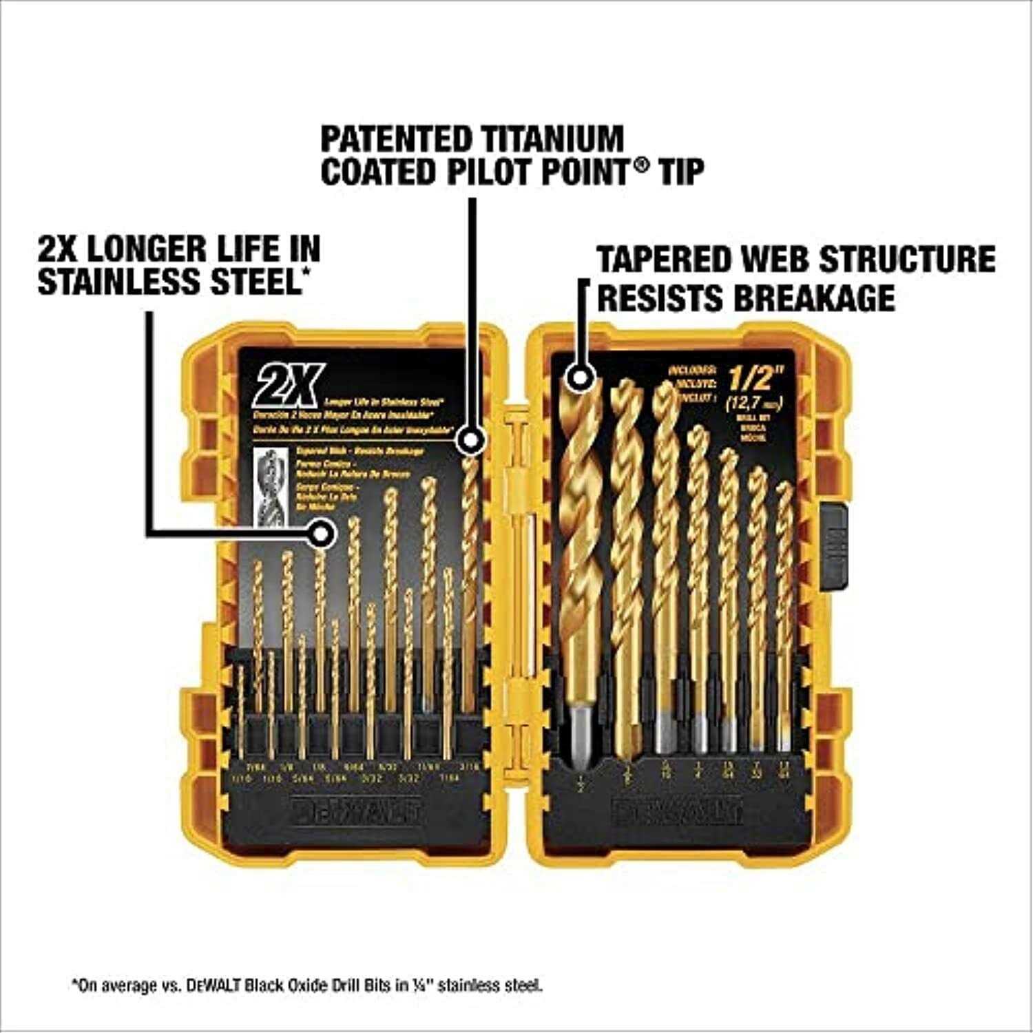DeWalt DW1361 21 Piece Pilot Point Titanium Drill Bit Set