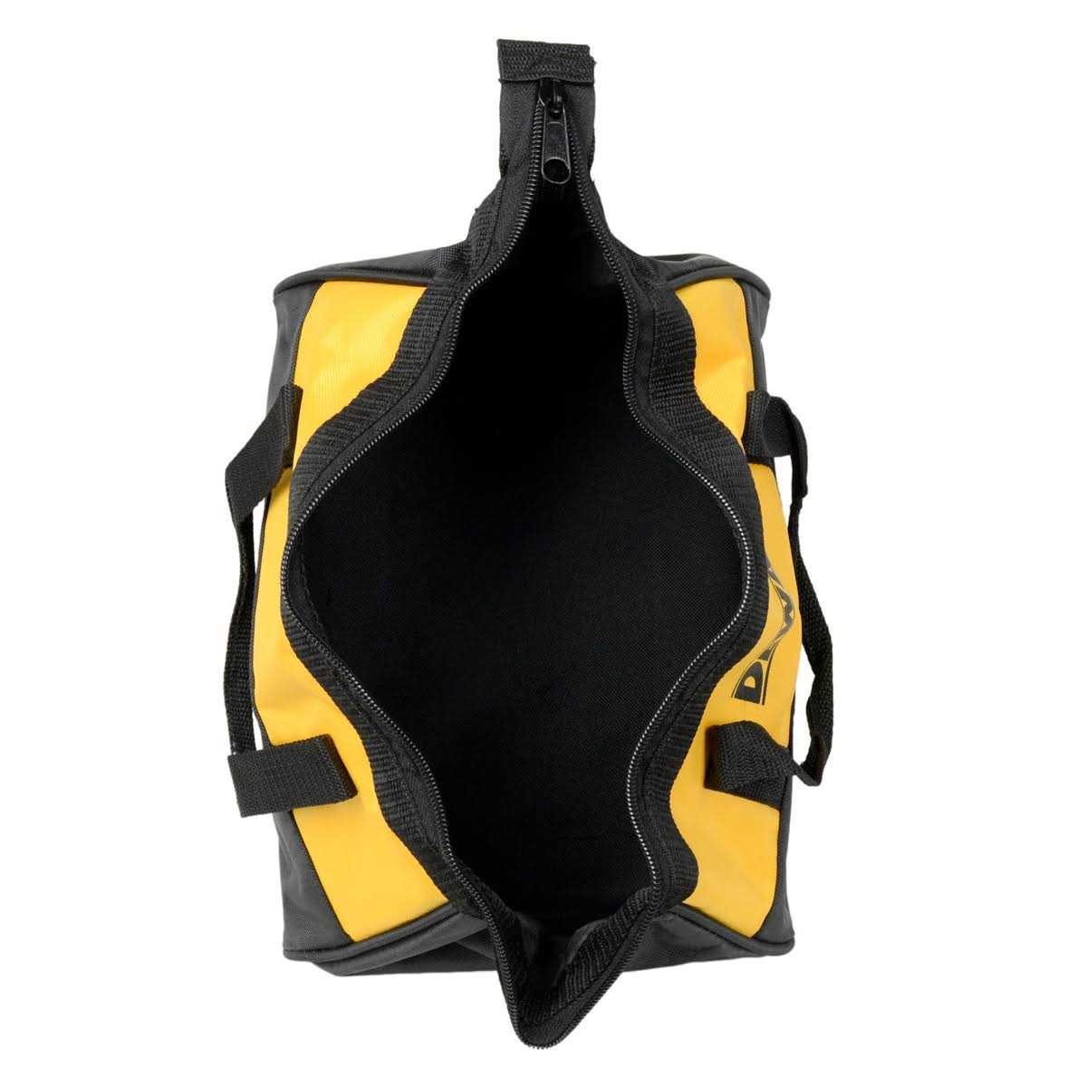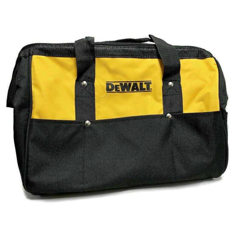 Dewalt 15′ Medium Heavy Duty Contractor Tool Bag (629053-00)This Dewalt 15′ Medium Tool Bag (Black and Yellow) is the perfect size for hauling compact power tools such as drills. impacts. chargers. and batteries. as well as hand tools like screwdrivers. wrenches. and more. around the job site. The bag features heavy-duty stitching to ensure it can hold as much weight as possible. which is great if youre looking for a bag capable of holding multiple tools at the same time. It also has a strong zipper enclosure. which helps to make sure your tools dont accidentally fall out during transport. Its even easier to carry than other comparable bags thanks to sturdy. durable handles.