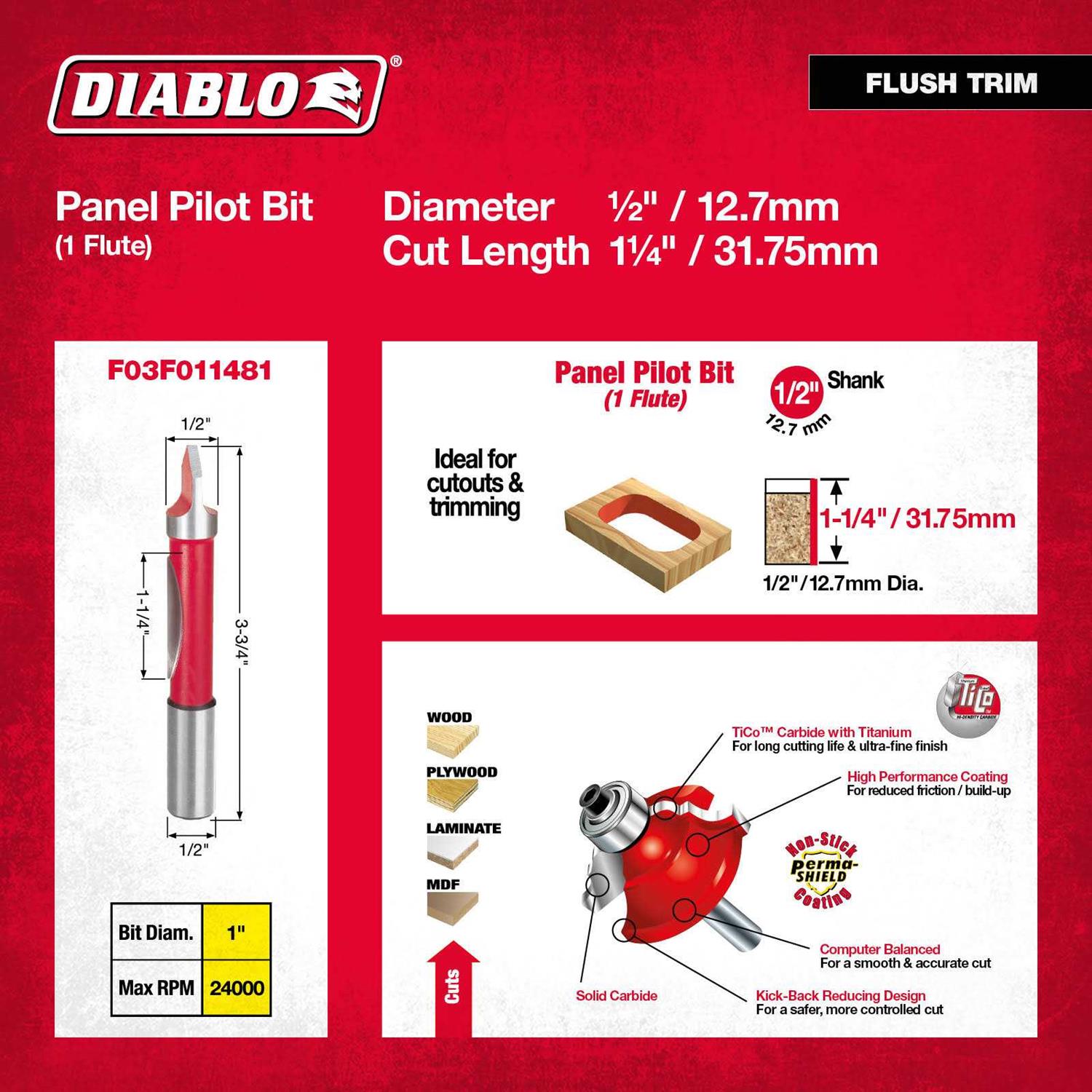 Be the first to review “Diablo 1/2 in. Carbide Panel Pilot Router Bit”