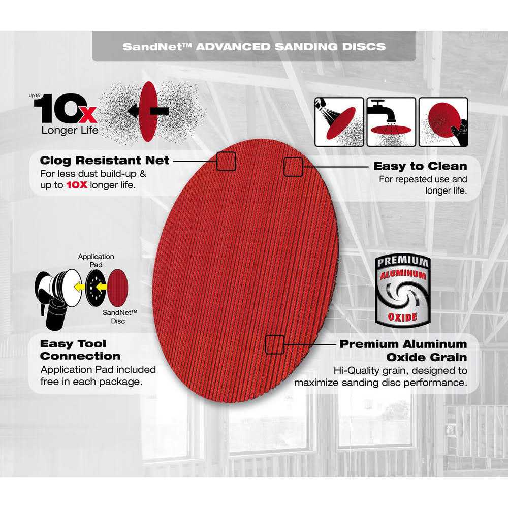 • Clog-reducing NET design for less dust build-up and up to 10X longer sanding life