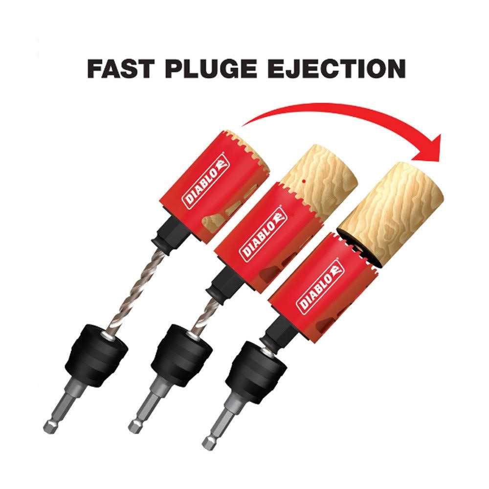 Diablo’s new, high performance hole saws deliver faster cutting performance and increased productivity. Unlike anything on the market, Diablo’s hole saw system and mandrel design simplify the attachment process for fast and efficient hole saw mounting. These radical new hole saws provide ultimate cutting length to bore deeper holes in a single pass, tool-free plug ejection and Variable Tooth Design for faster cuts.